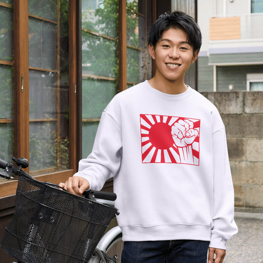 Creative Japan flag design featuring a raised fist for unity