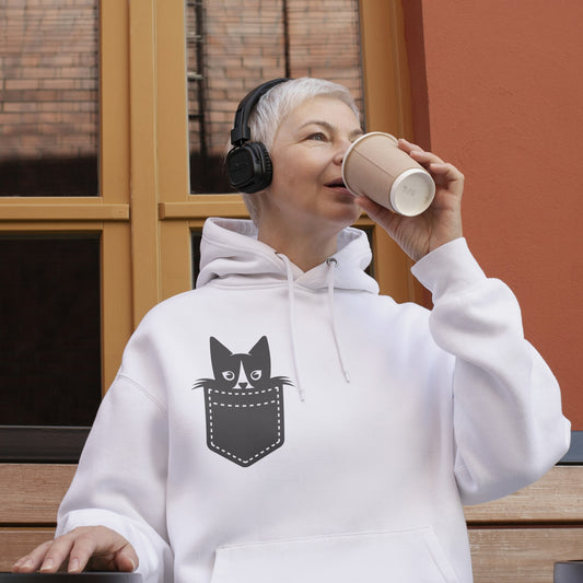 Cute cat peeking out of a pocket design for crafting fun