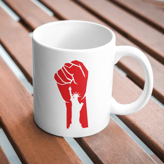Empowerment symbol featuring a revolution fist and Statue of Liberty