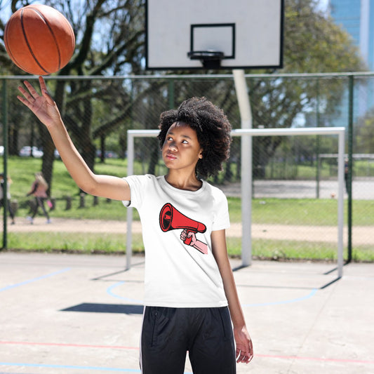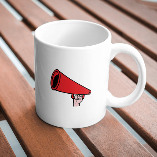 Creative hand holding a red megaphone for expression