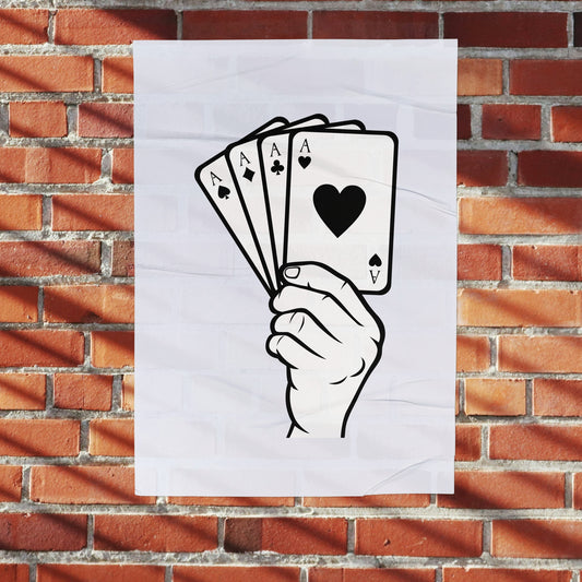 Creative hand holds four playing cards for fun activity