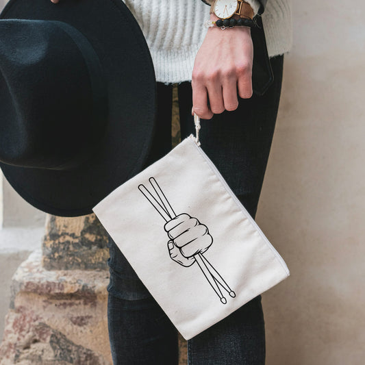 Creative hand gripping drumsticks for dynamic music expression