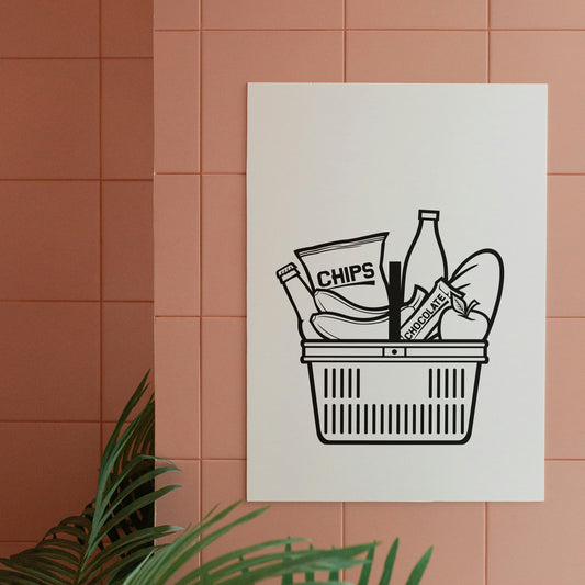 Shopping basket filled with delicious food and drinks