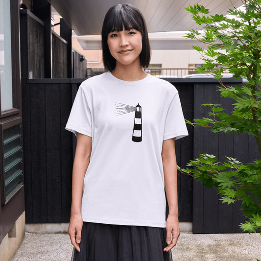 Coastal beacon guiding sailors with elegant design. Lighthouse with a striking architecture.
