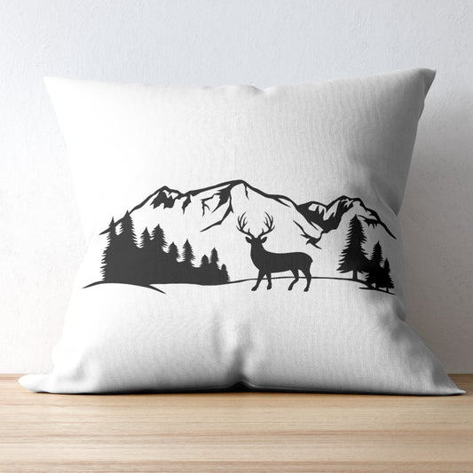 Majestic deer silhouette against serene mountain backdrop