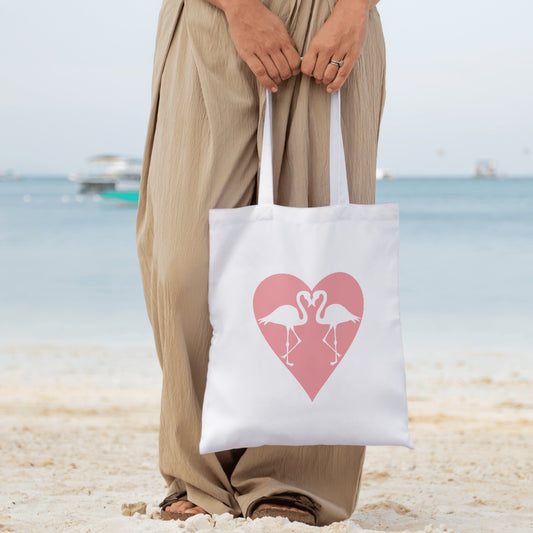 Two flamingos in love surrounded by a heart shape