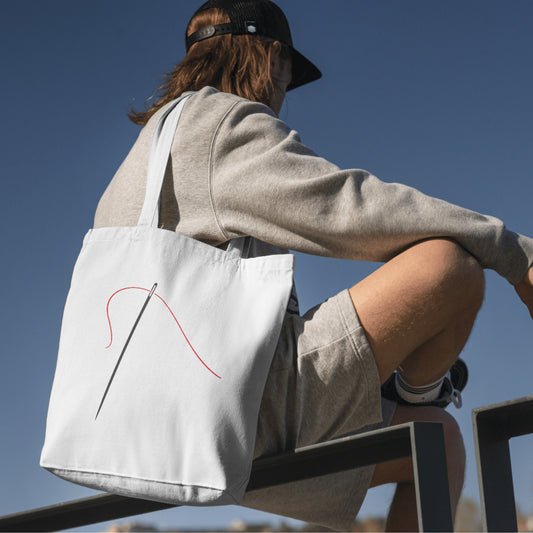 Creative vector svg of a needle with red thread for crafting
