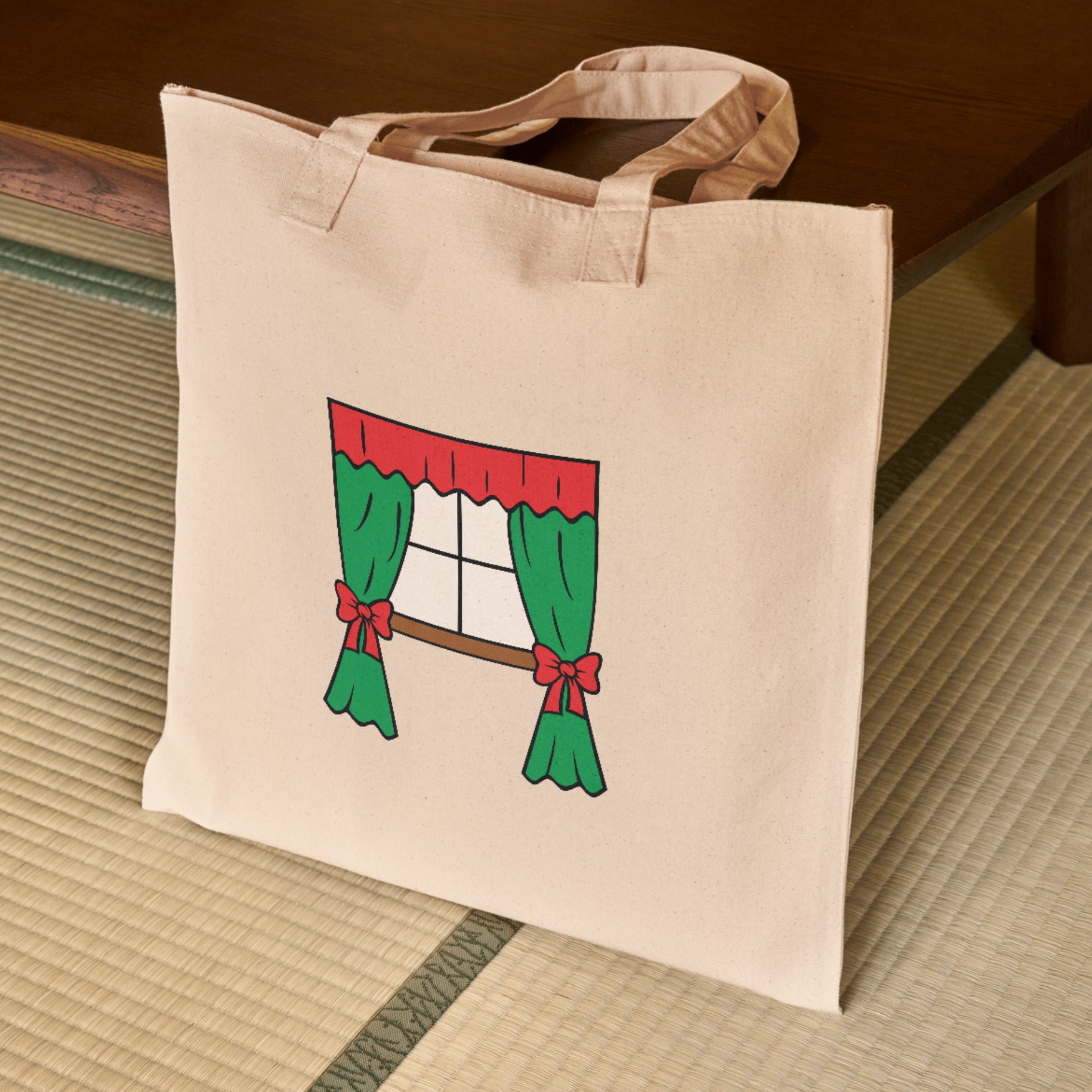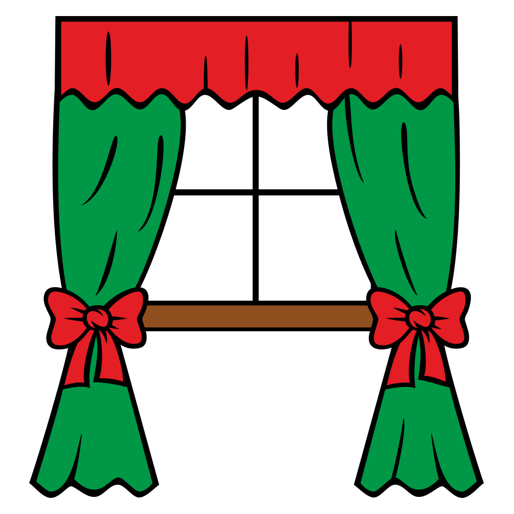 Delightful vector illustration features a window adorned with vibrant green curtains and red accents, perfect for seasonal decorations or crafting projects, bringing warmth and cheer to any space.