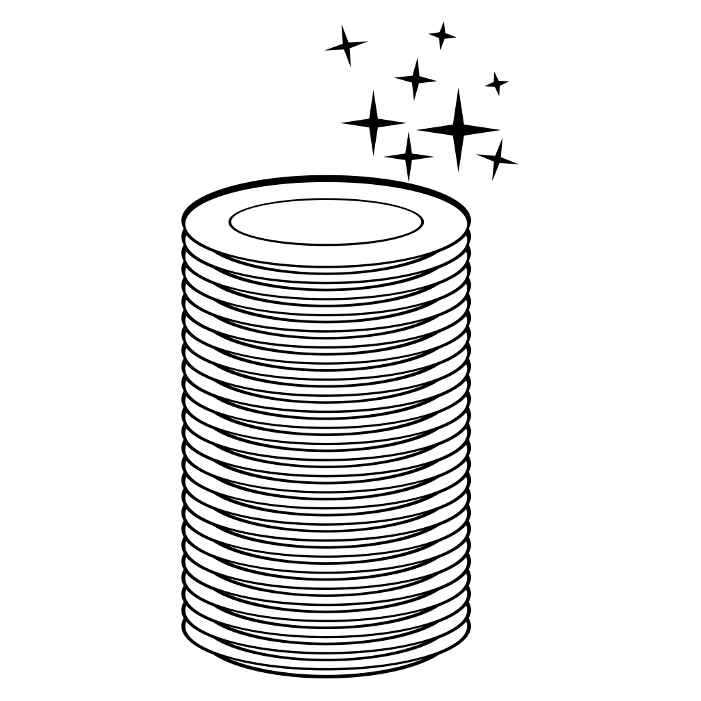A stack of perfectly clean dishes stands tall, shining with a few twinkling stars. Ideal for representing tidiness and the joy of finishing chores in any creative project.