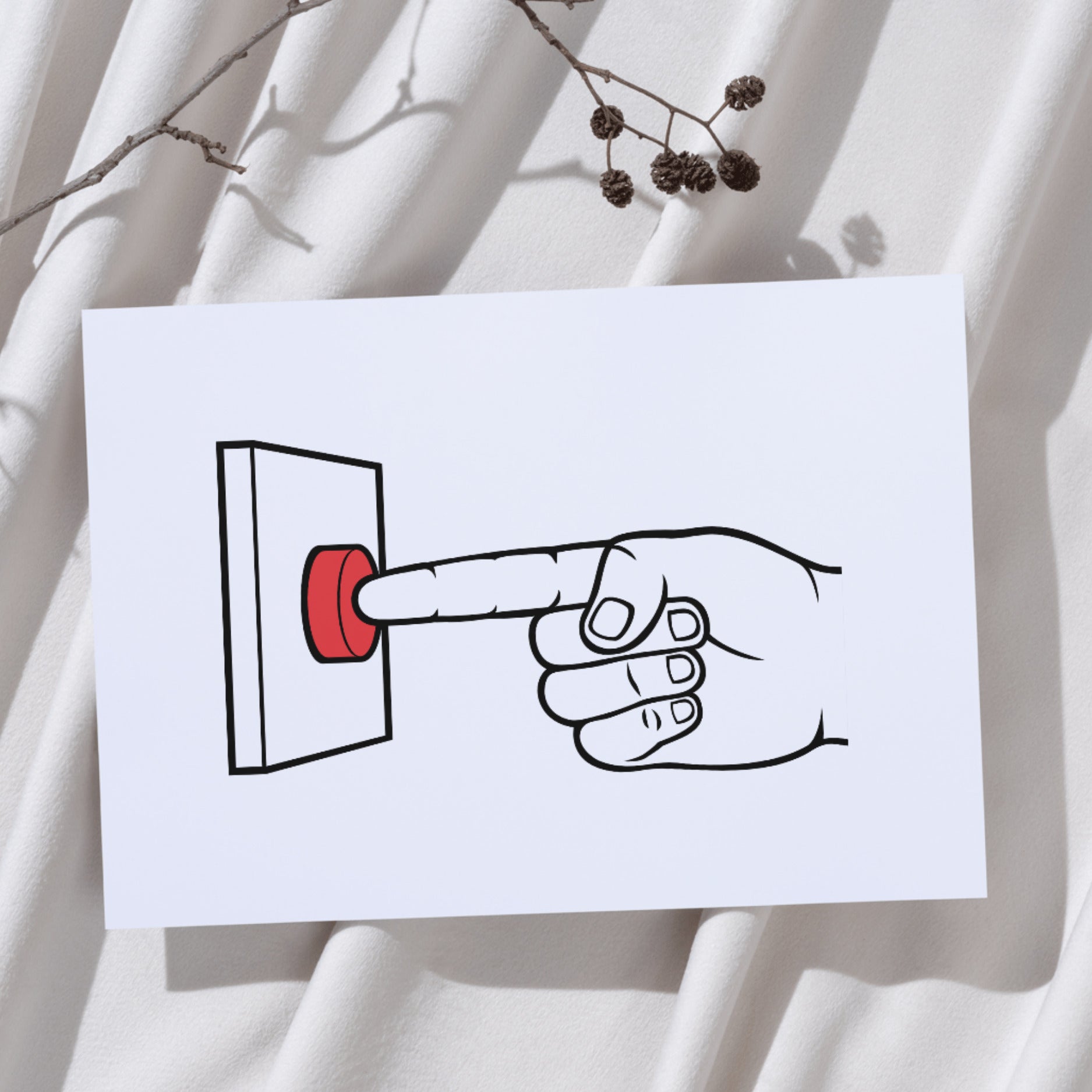 A hand reaches out to press a vibrant red button on a clean surface. Perfect for vector art enthusiasts who enjoy creating unique designs for cutting machines.