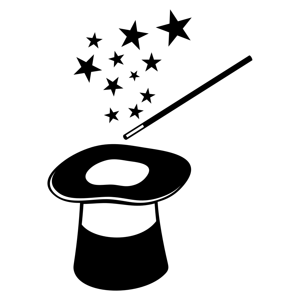 A whimsical magic hat sits atop a flat surface, decorated with a wand casting sparkling stars. Perfect for creative projects and enchanting decorations to inspire wonder.