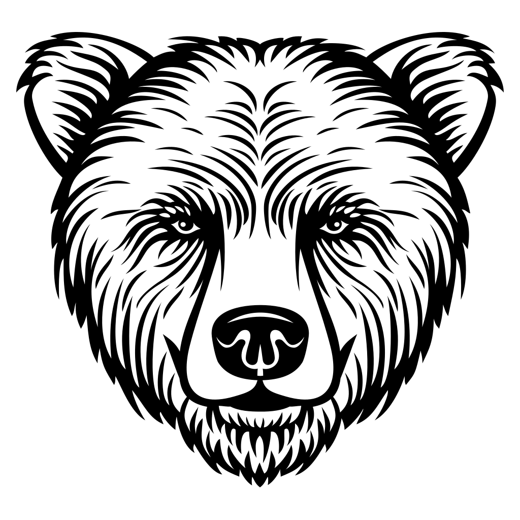 Stylized bear head illustration features intricate linework, perfect for crafting projects. Ideal for personalized designs and DIY activities with cutting machines at home or workshops.