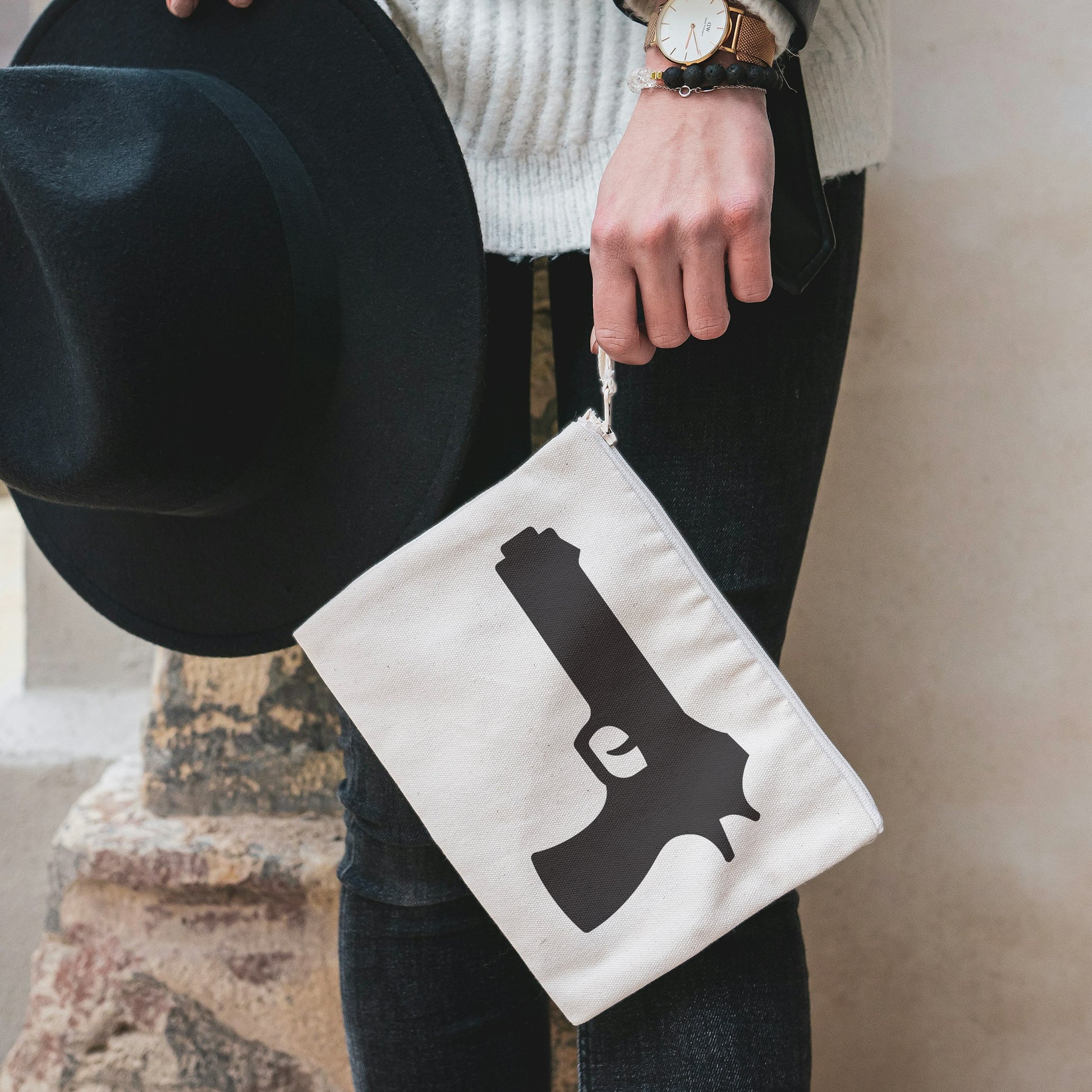 Intricate black silhouette of a pistol crafted in vector style, perfect for cutting machines or artistic designs. Ideal for DIY projects or graphic design applications.