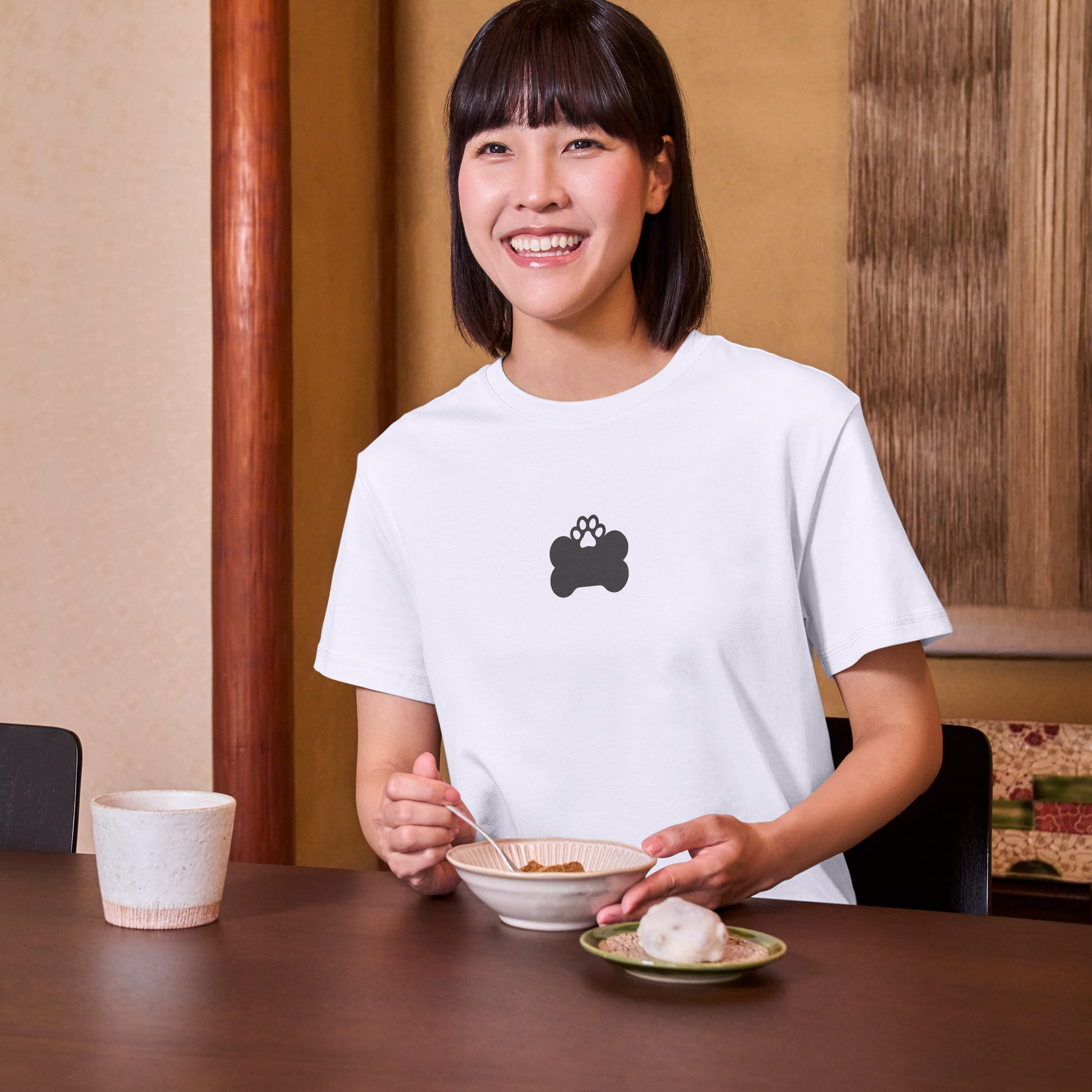 A stylish dog bone-shaped tag features a paw print cutout, perfect for personalization and crafting. Ideal for pet owners looking to enhance their furry friend's accessories.