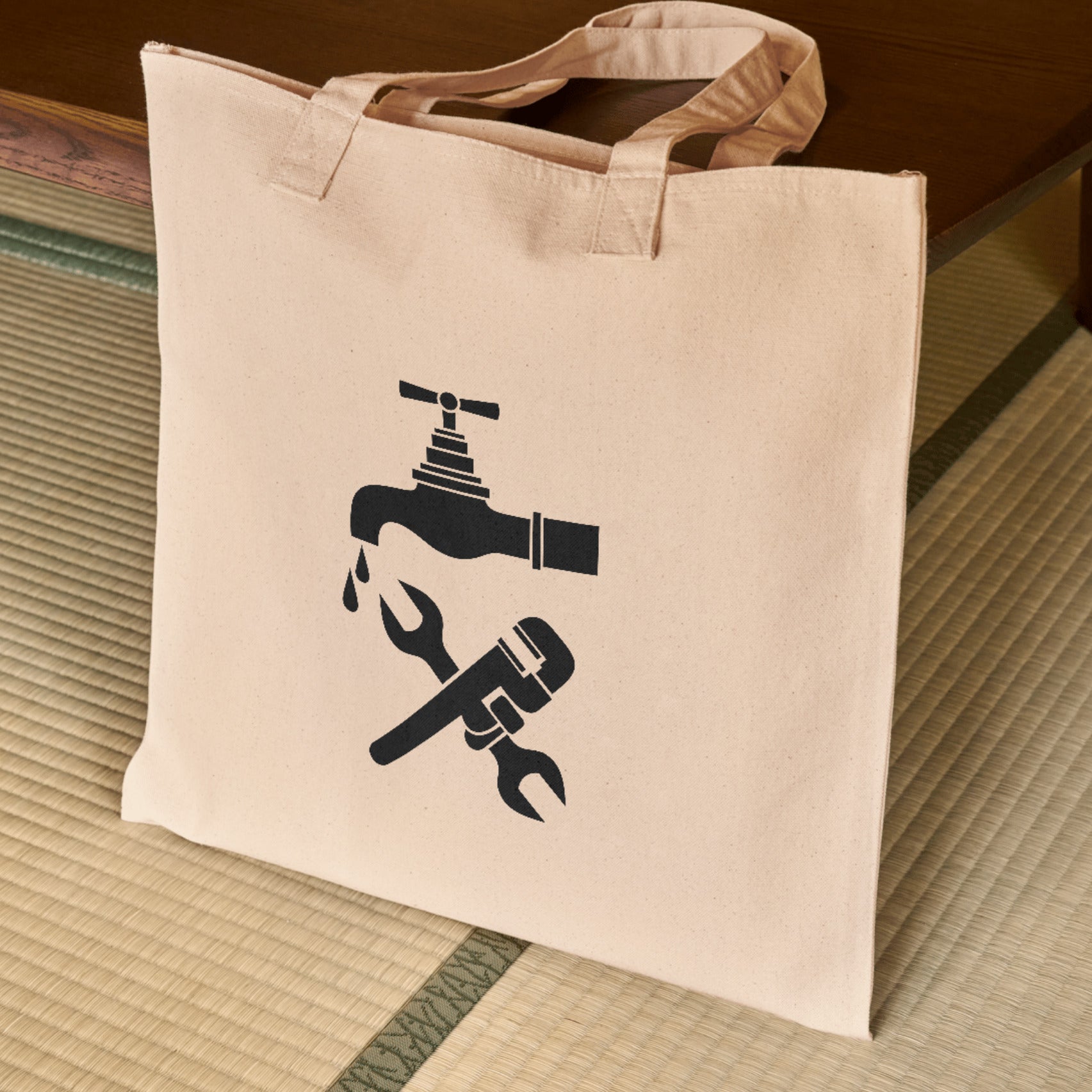 This artwork showcases a unique plumbing design featuring a dripping faucet along with essential tools like wrenches. Ideal for vinyl cutting or crafting projects.