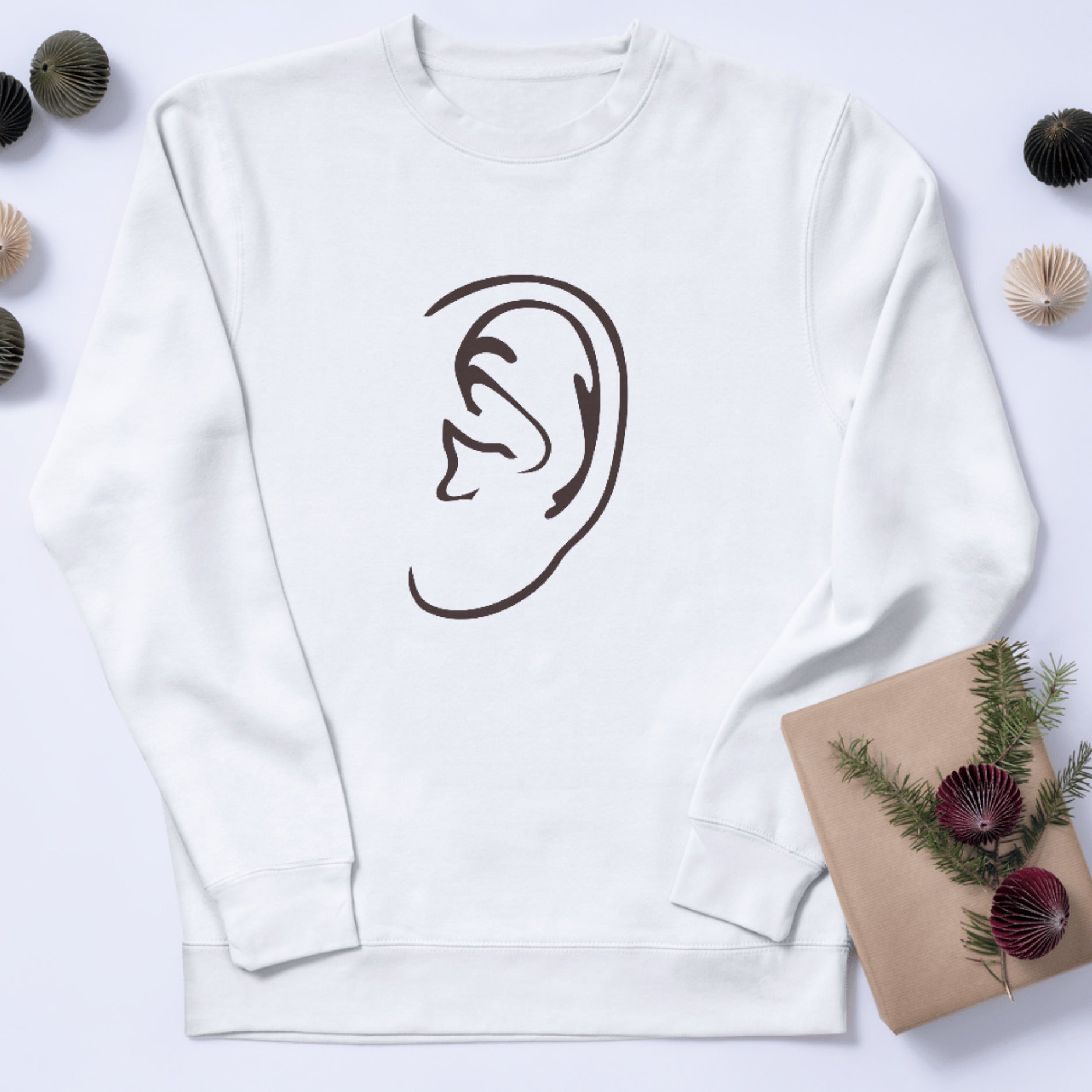 Stylized ear graphic showcases smooth lines and elegant shape, perfect for crafting projects. Ideal for use with cutting machines to create unique designs for various applications.