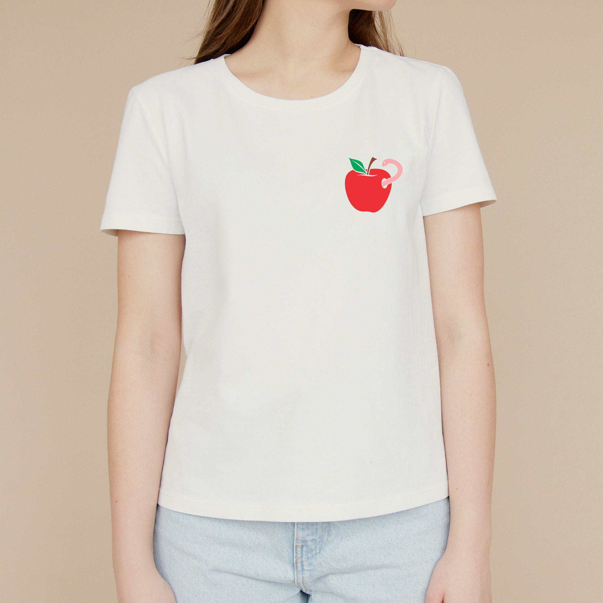An imaginative vector design featuring a bright red apple with a playful worm peeking out. The artwork captures a whimsical interaction, perfect for cutting machines and crafting projects.