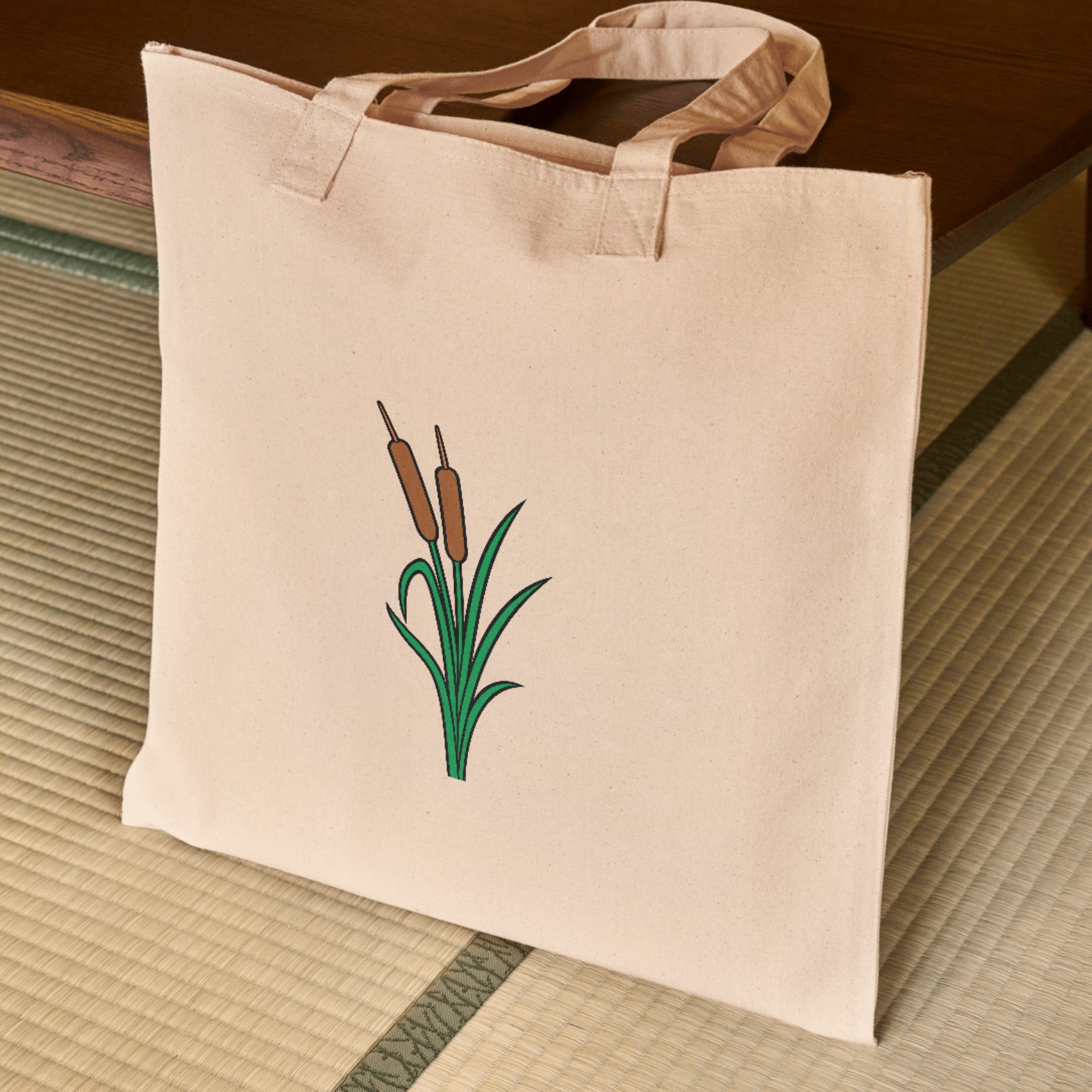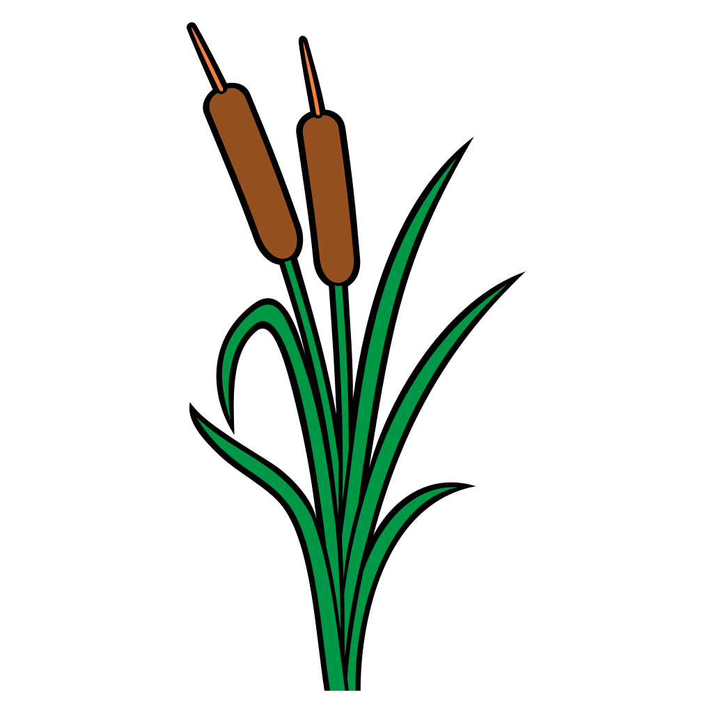 Cattails stand tall amidst vibrant green grass, their brown heads swaying gently. This artistic illustration captures nature's beauty, ideal for cutting machines and crafting enthusiasts.