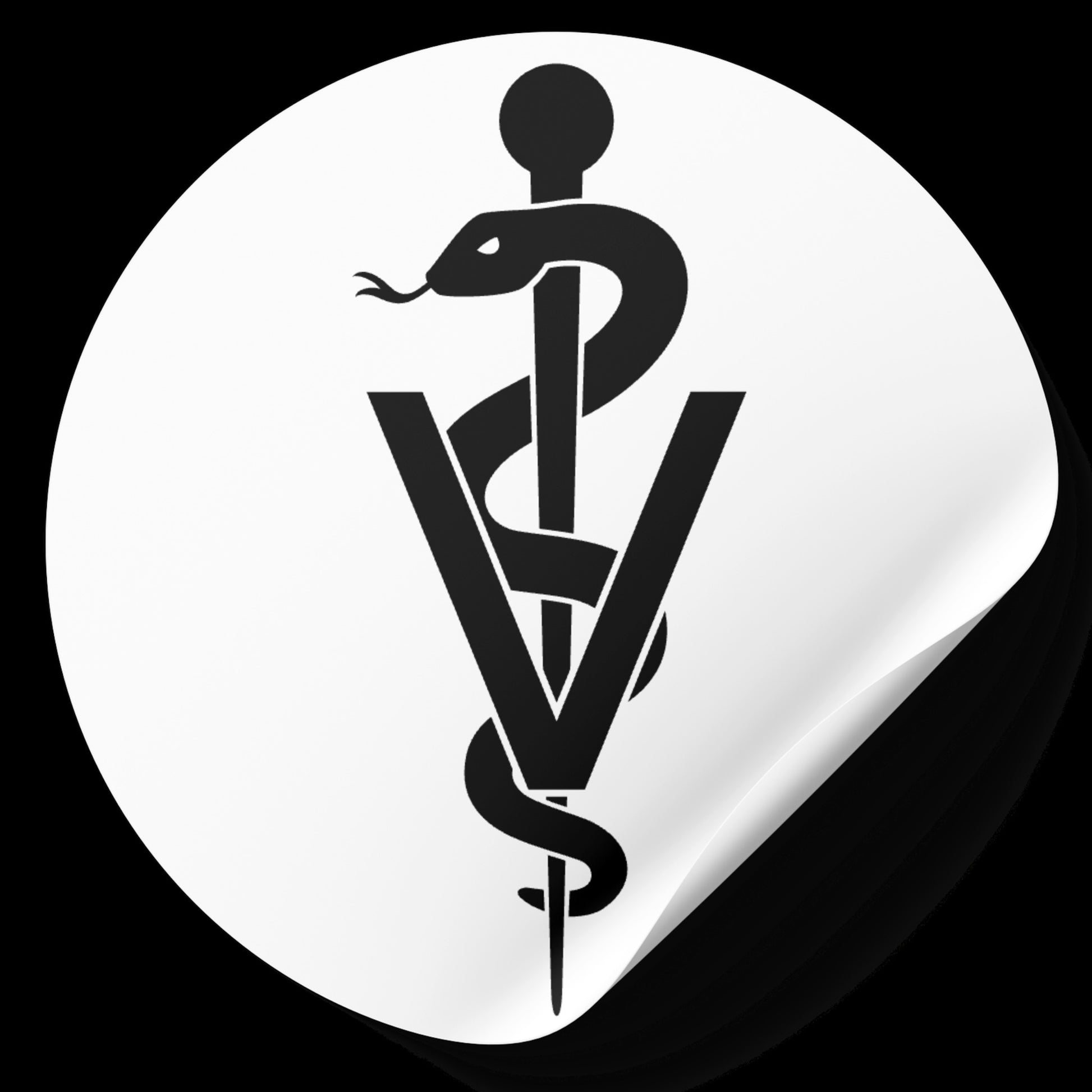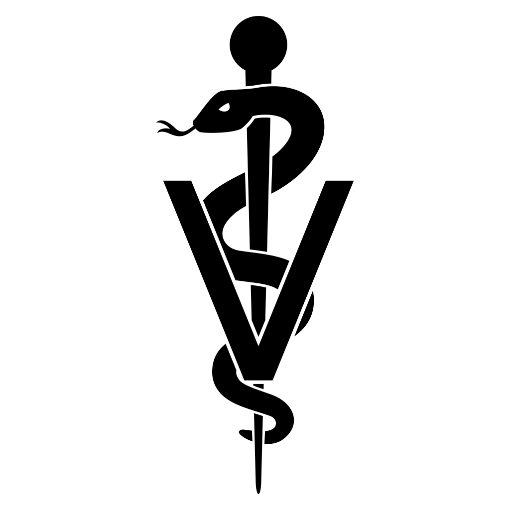 A unique vector design featuring the veterinary symbol with a snake wrapped around a staff and stylized letters. Ideal for crafting projects and enhancing veterinary branding.