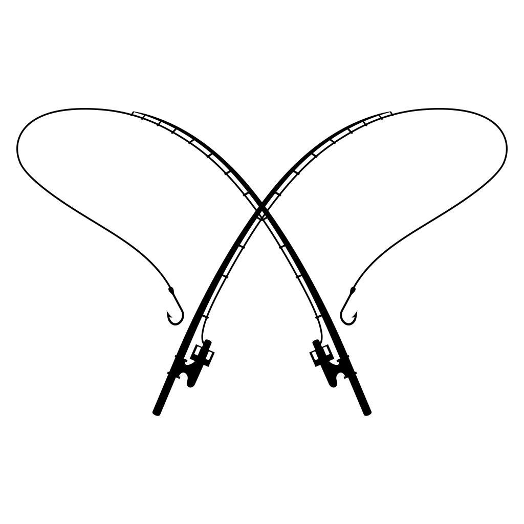 Two fishing rods are crossed in an artistic arrangement, perfect for crafting unique designs and accents in fishing-themed projects. Ideal for enthusiasts and crafters alike.