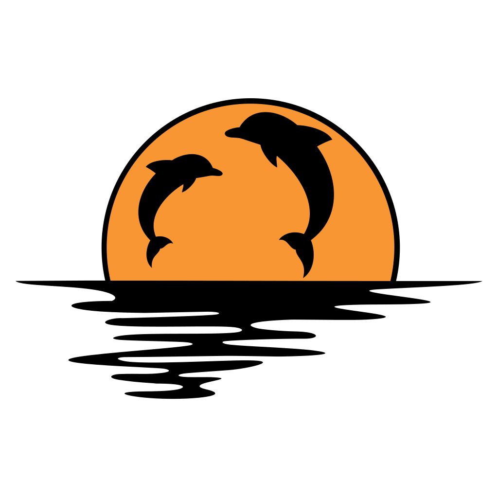 Dancing dolphins beneath a vibrant sunset on the horizon