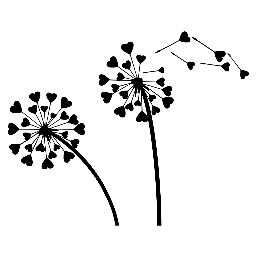 Delicate dandelions transform into whimsical hearts drifting through the air. This enchanting vector design captures affection and beauty in a unique artistic expression.