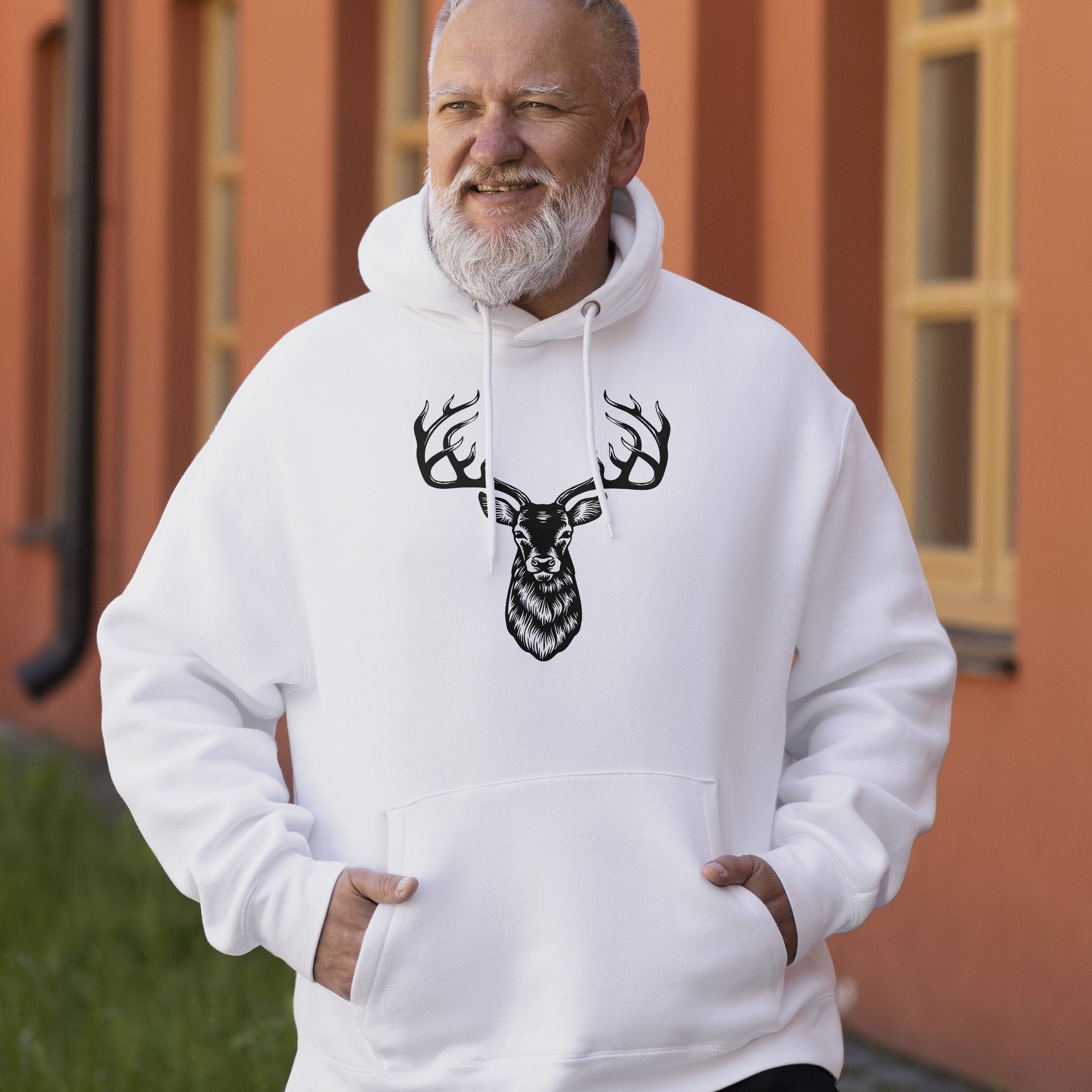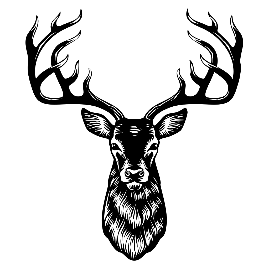 This artistic vector SVG features a majestic deer head in black and white, perfect for use with cutting machines. Ideal for various craft projects and home decor.