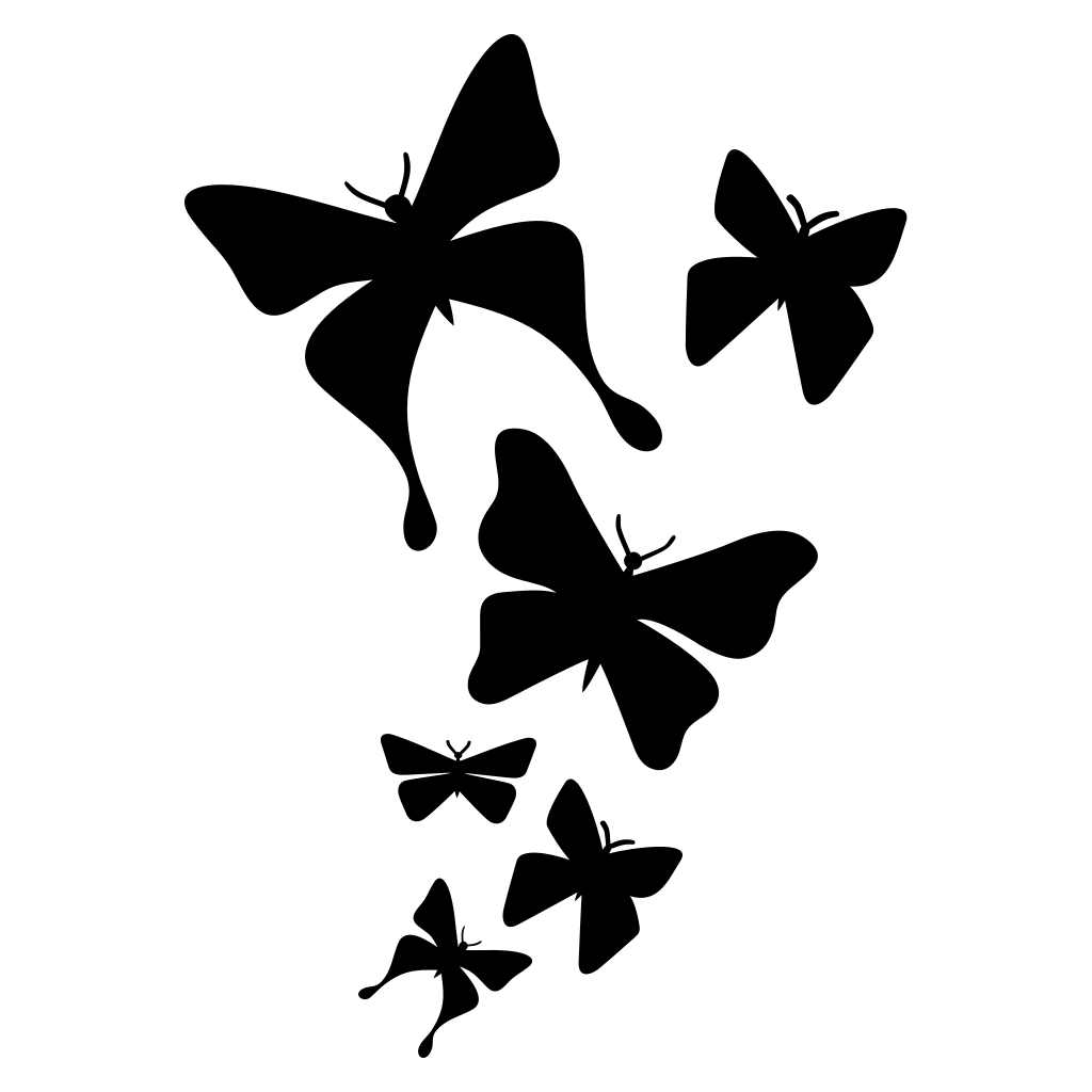 A stunning collection of black butterfly silhouettes captured in mid-flight.