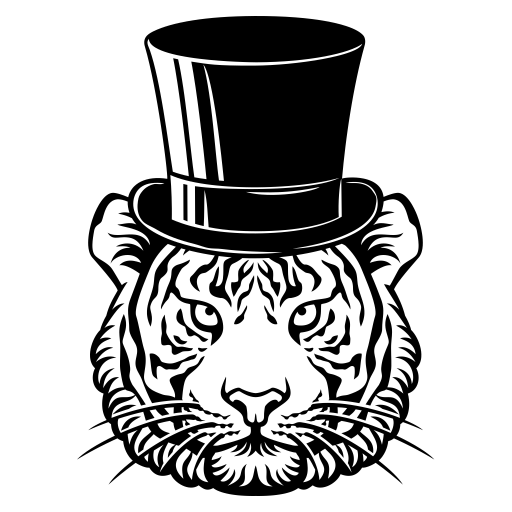 This striking black tiger design showcases a majestic creature adorned with a classic top hat. Perfect for unique crafting projects and digital art creation, this vector piece adds an elegant flair.