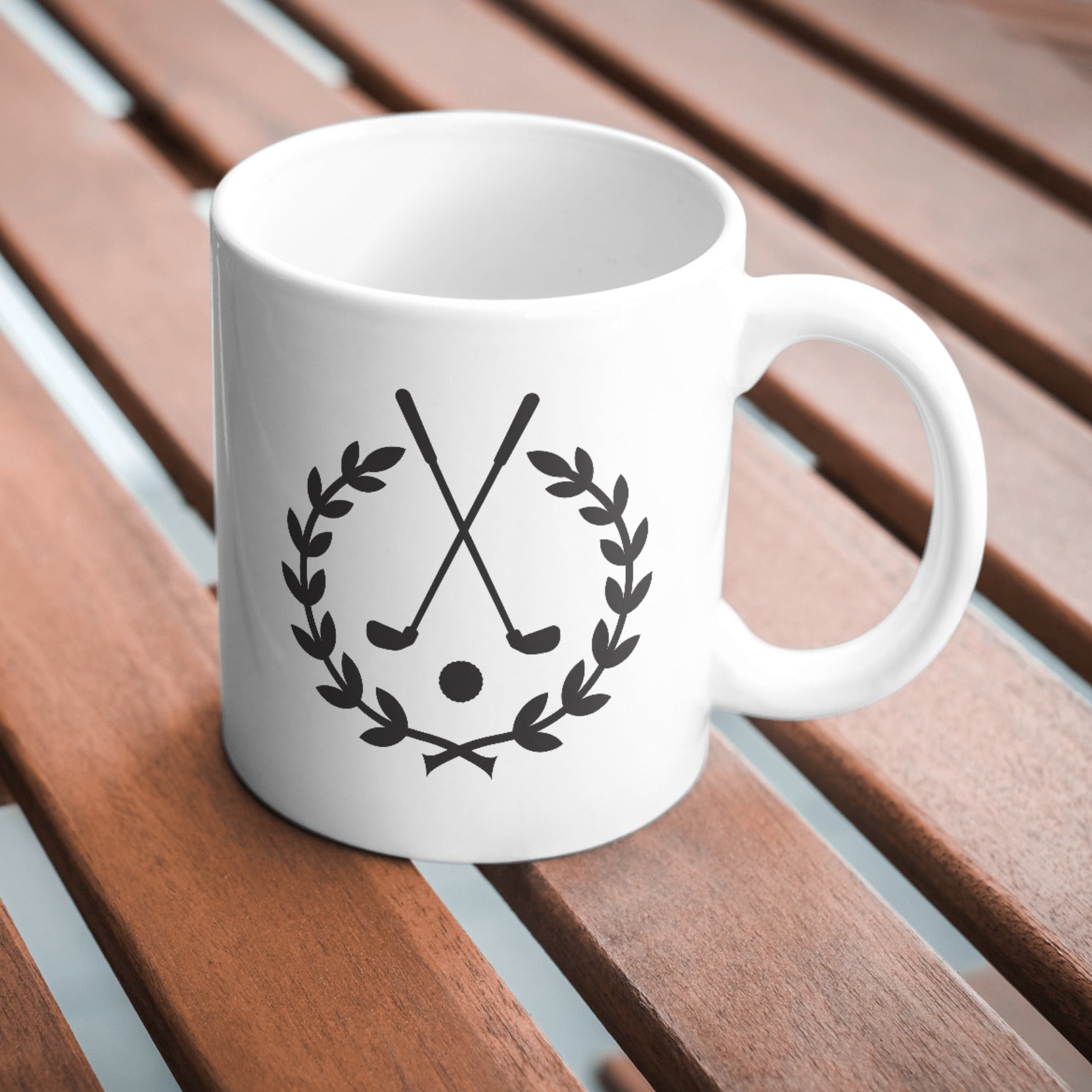This intricate vector design showcases a laurel wreath encircling crossed golf clubs and a golf ball, perfect for personalized decorations and cutting projects. Ideal for golf lovers.