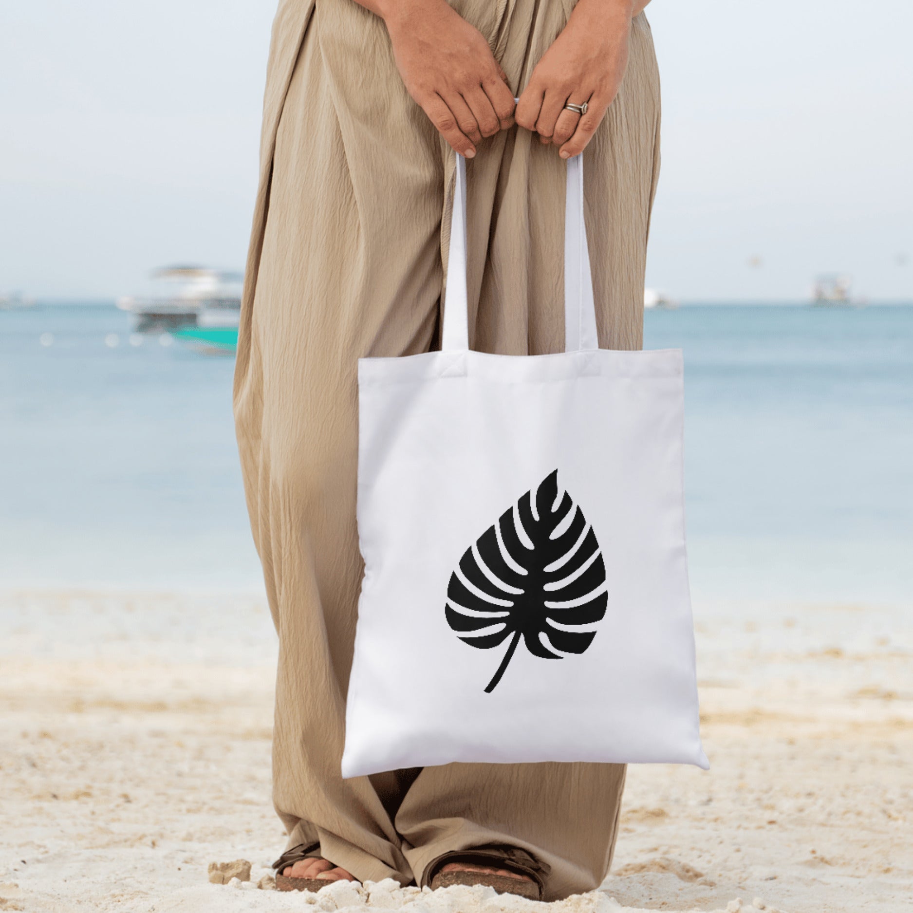 Sleek black silhouette of a Monstera leaf showcases intricate cut lines perfect for various crafting applications. Ideal for personalizing any creative endeavor with a touch of nature.
