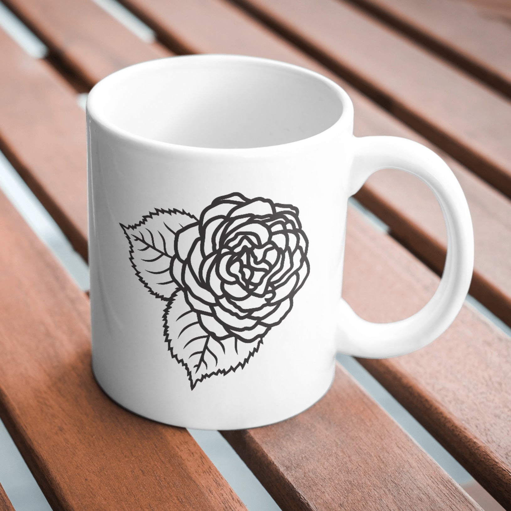 Detailed sketch of a rose with lush leaves, perfect for creating beautiful crafts. This vector design works well in home decor and custom greeting cards, adding a floral touch to any project.