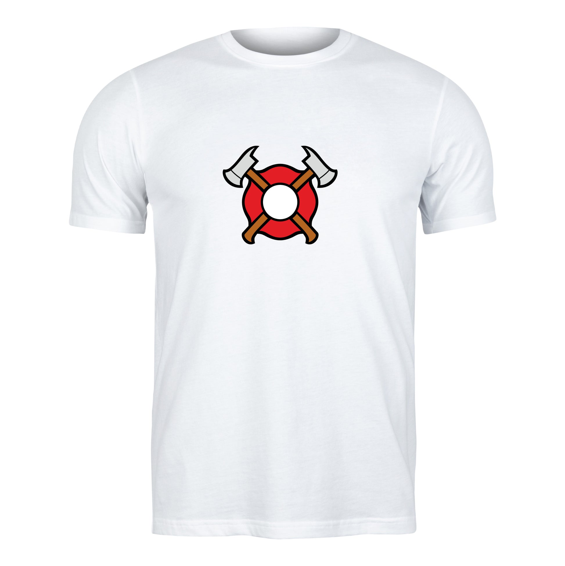 Detailed depiction of a firefighter's badge featuring crossed axes, symbolizing courage and service. This emblem represents daily heroism in safeguarding communities against fires and dangers.