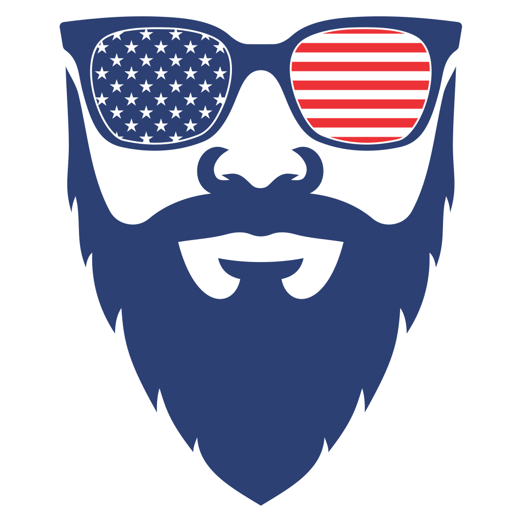 A bold design featuring a bearded man with hipster sunglasses, showcasing the American flag in a creative and artistic way. Perfect for cutting machines and unique crafts.