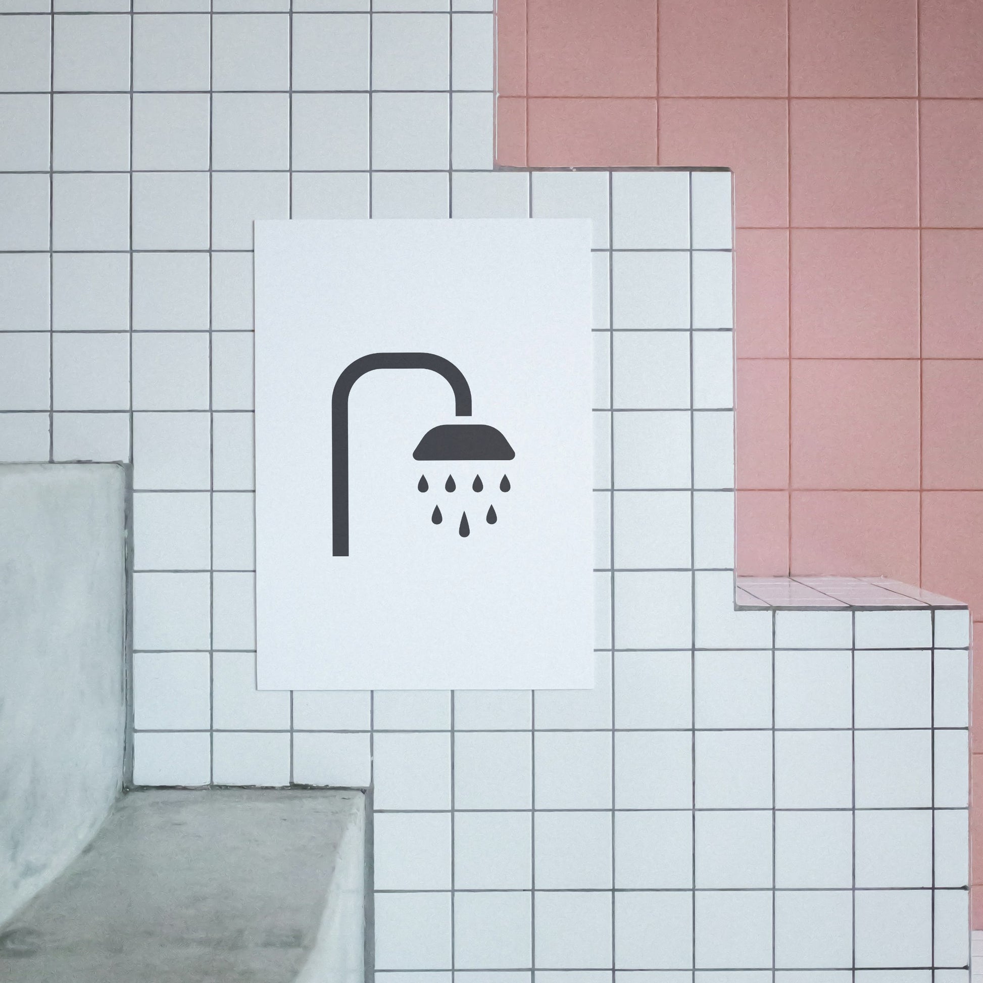 This vector svg file showcases a modern shower head with droplets, perfect for adding a touch of elegance to bathroom decor projects or DIY crafts. Ideal for cutting machines.