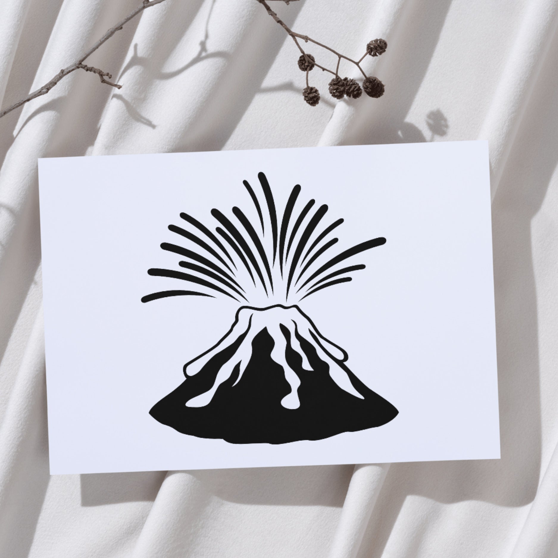 Explosive eruption of a volcano captured in a striking vector silhouette, ideal for crafting projects, artwork, or digital designs. Perfect for adding a dramatic touch to any creation.