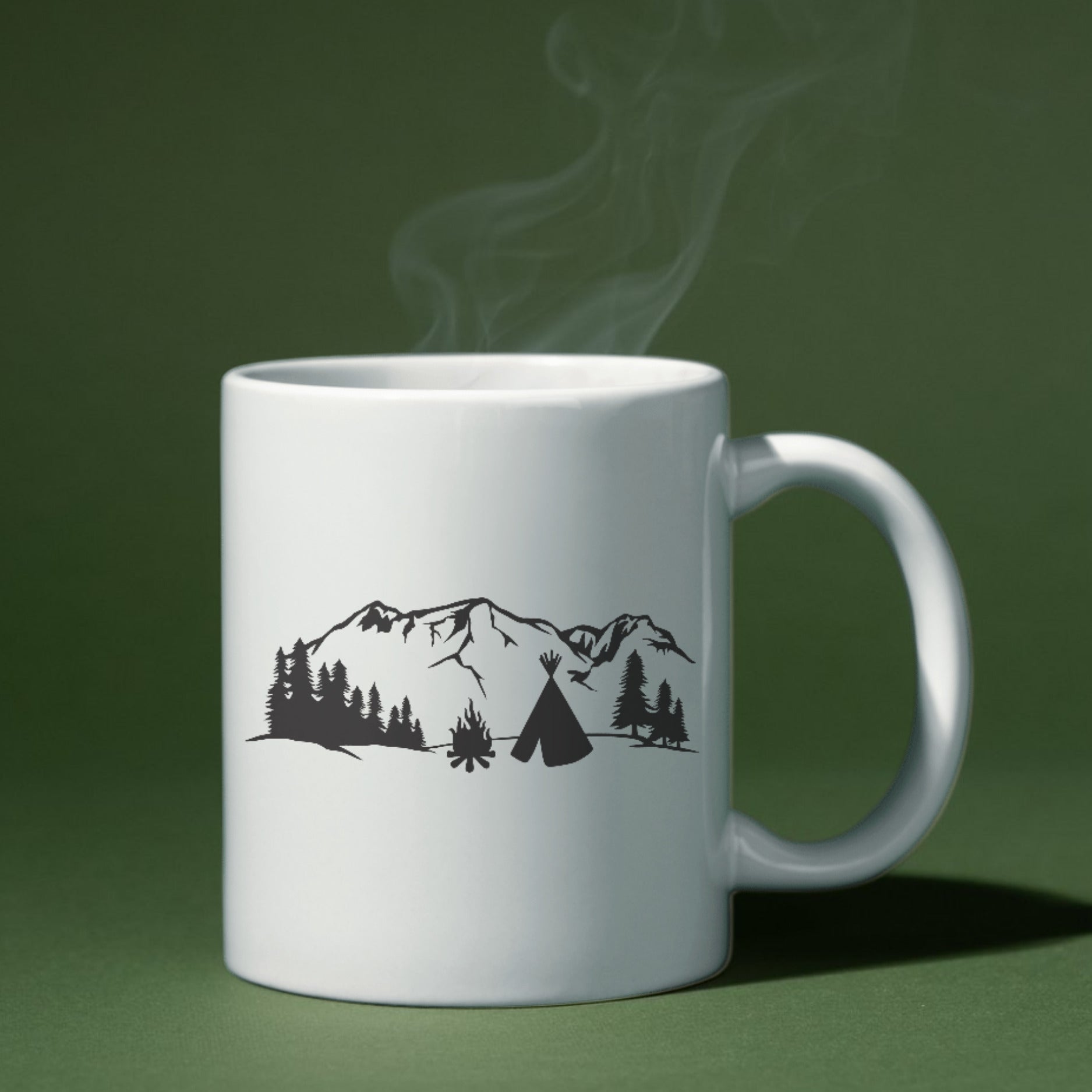 Discover a native american wigwam nestled among towering mountains and lush trees, offering a picturesque view of nature's splendor and a tranquil camping experience.