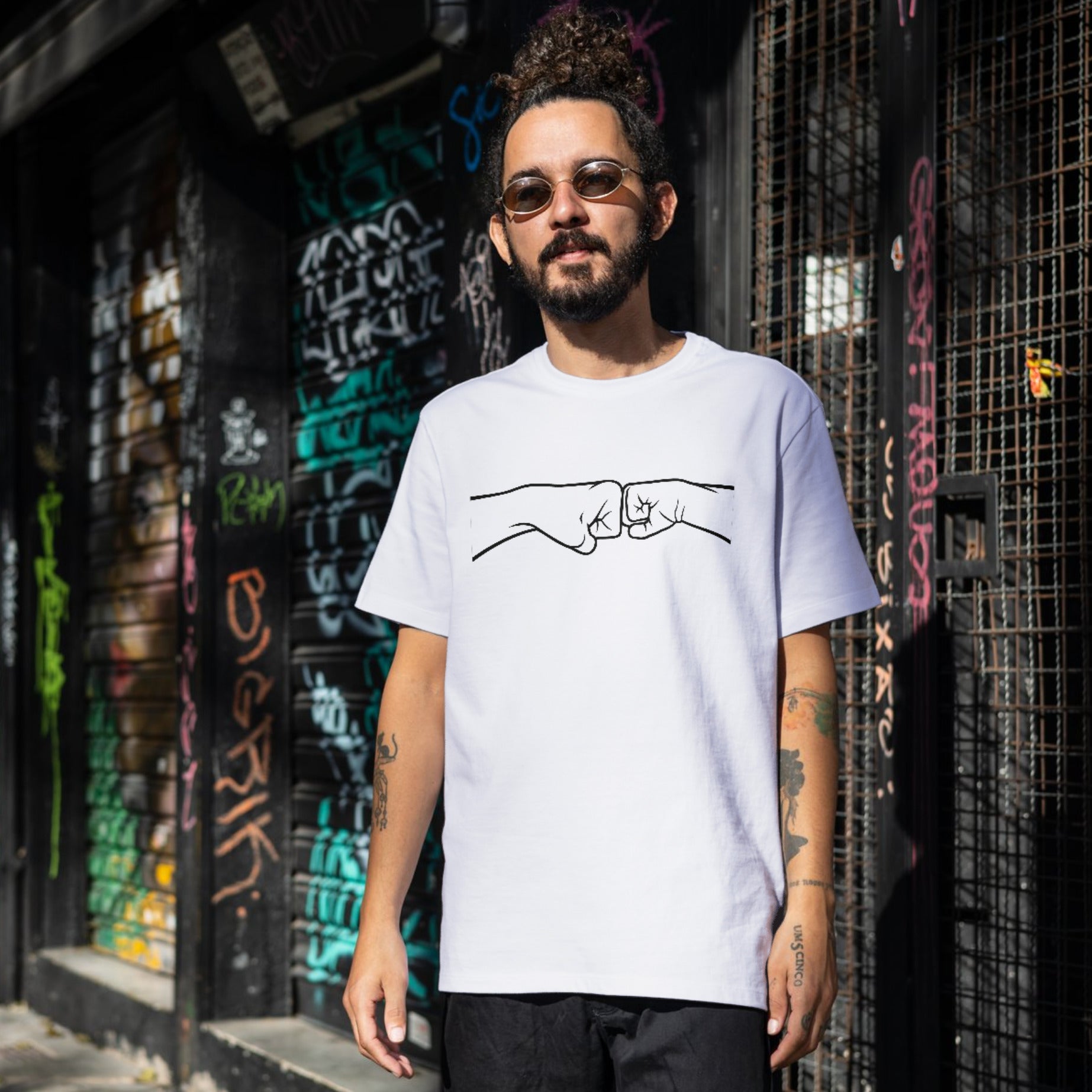 Fists colliding in a powerful punch graphic for cutting machines