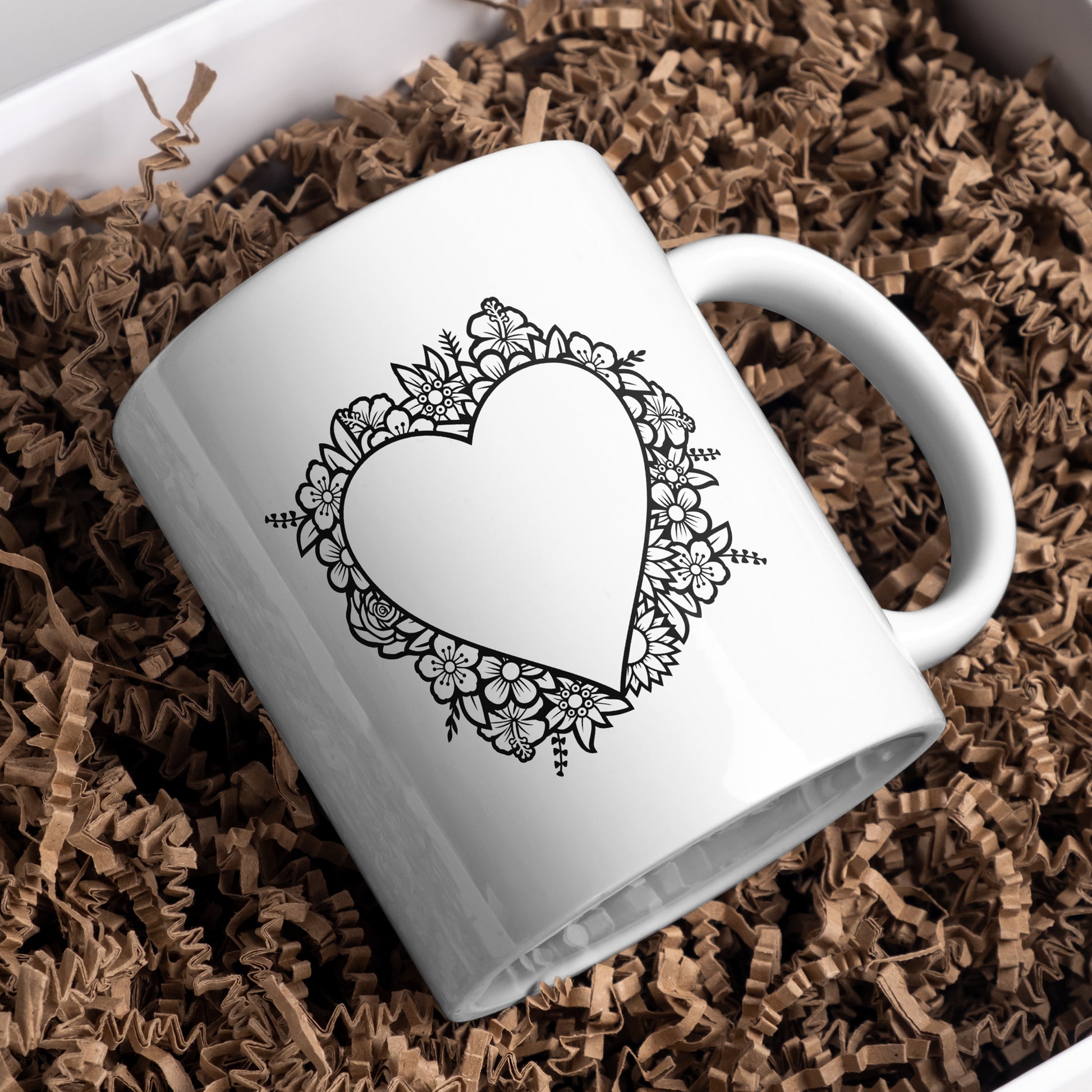 A beautiful floral heart design showcases intricate flowers and leaves in a delicate arrangement. Ideal for cutting machines and perfect for various crafting endeavors.