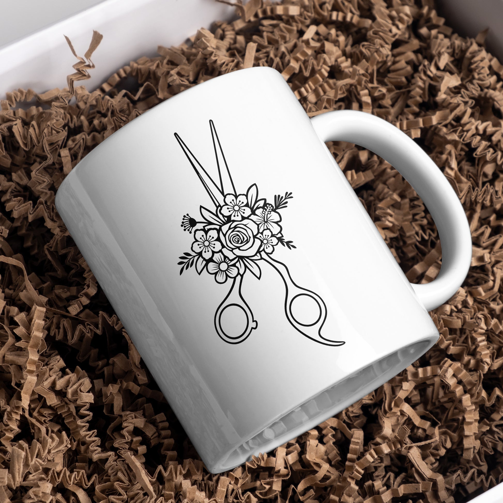 Crafted in a sleek vector style, this black and white artwork showcases floral scissors adorned with vibrant blossoms. Perfect for creative projects and cutting applications, it embodies elegance.