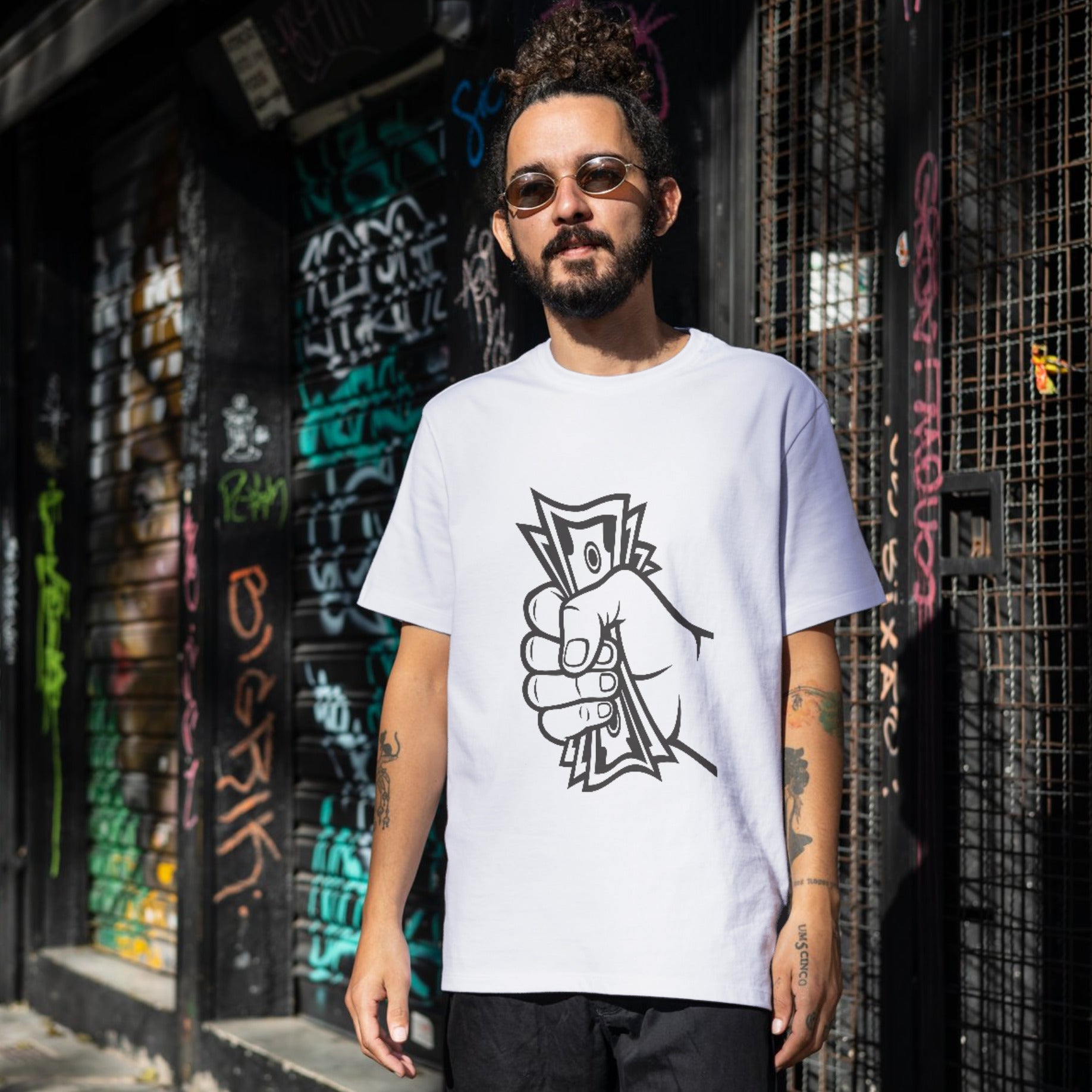Illustration features a hand firmly holding a stack of money, symbolizing financial empowerment. Perfect for cutting machine projects that emphasize wealth and success.