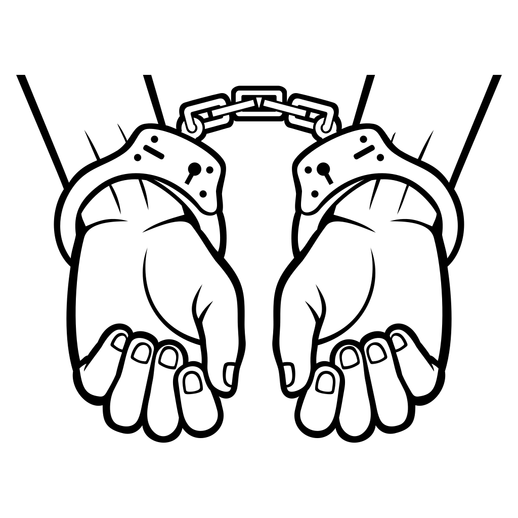 This vector design features two hands bound in handcuffs, symbolizing confinement and restriction. Ideal for cutting machines, it adds a bold statement to various artistic endeavors.