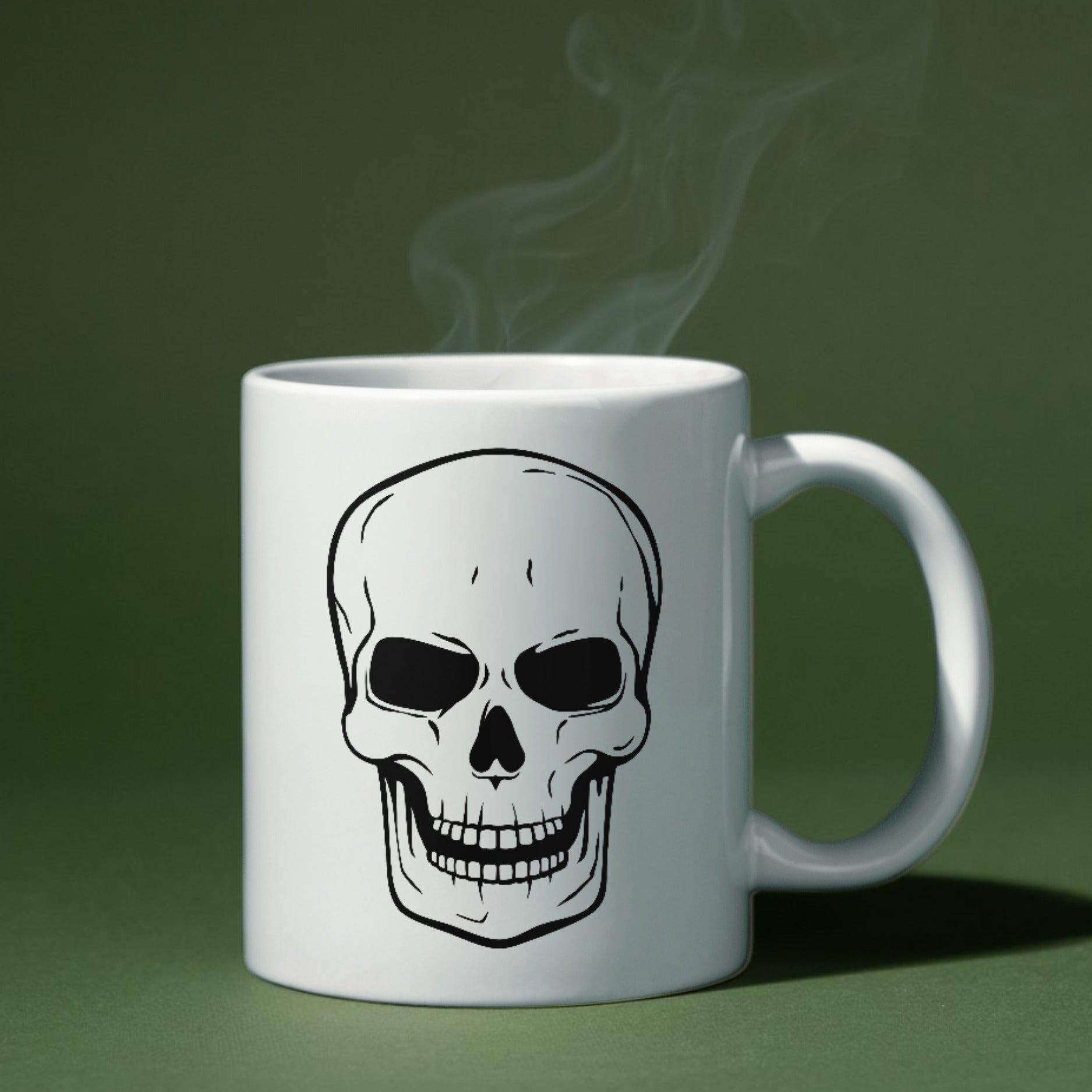 This striking black and white skull illustration showcases detailed features, perfect for crafting and design projects using cutting machines. Ideal for creative artwork.