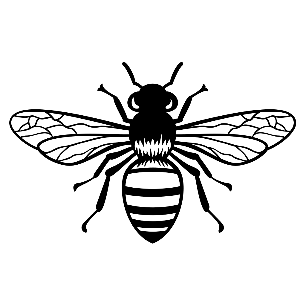 This vector illustration captures a detailed black bee with delicate wings and stripes, ideal for cutting machines and artful crafting endeavors. Enhance your designs effortlessly.