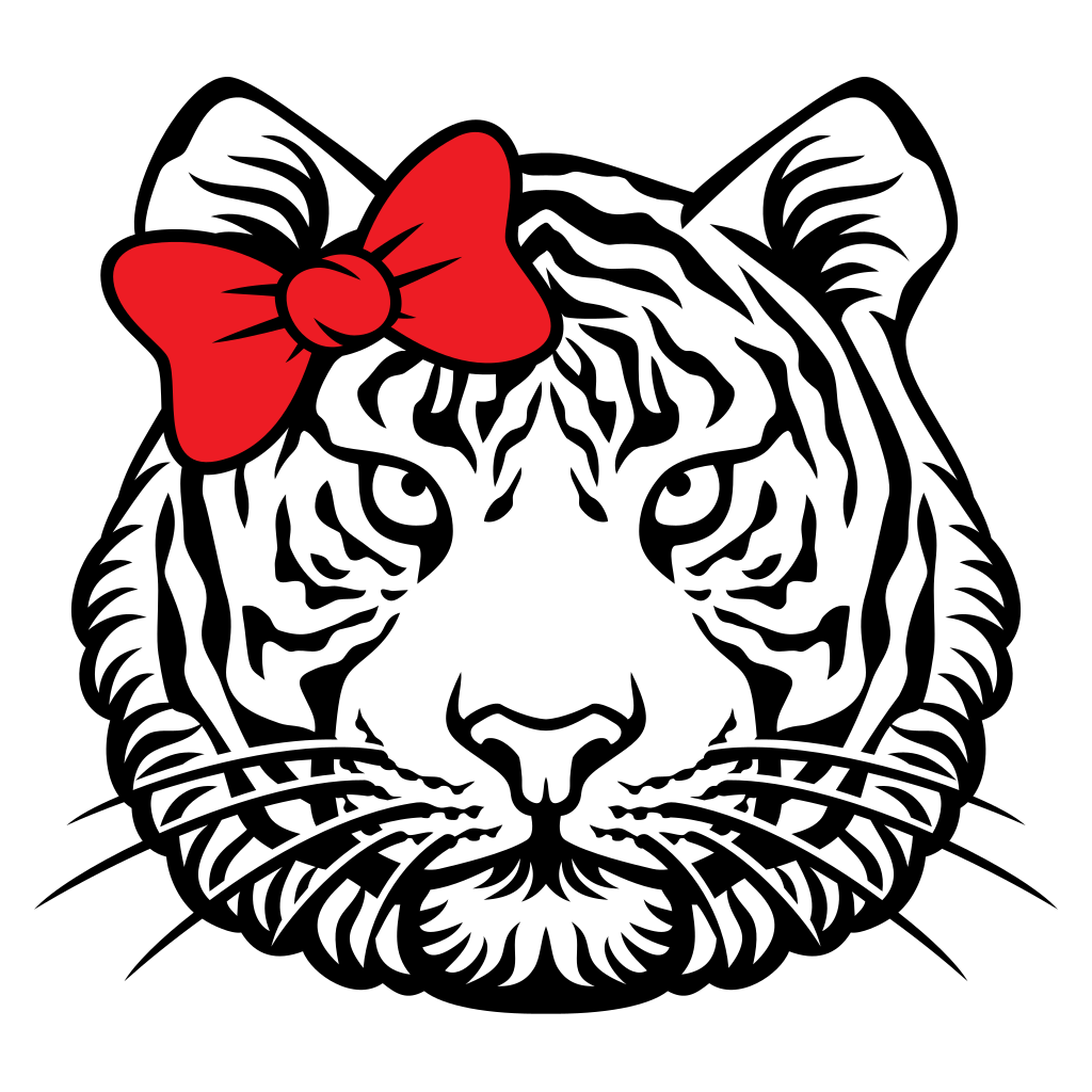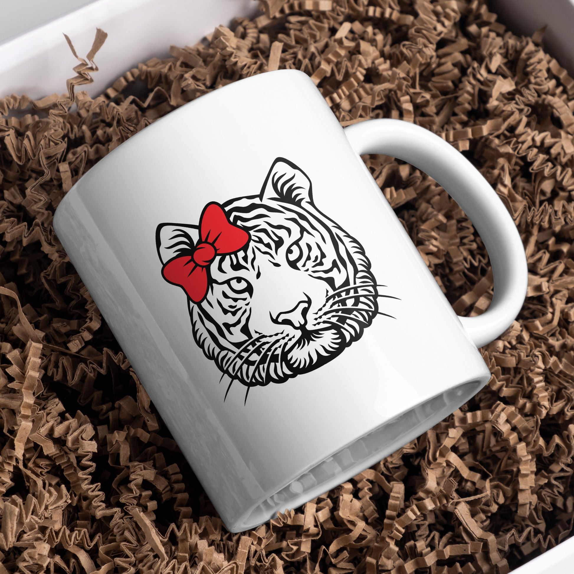 This captivating vector design features an intricately layered tiger head adorned with a stylish red bow. Ideal for crafting projects or digital art, it brings a playful touch to any creation.