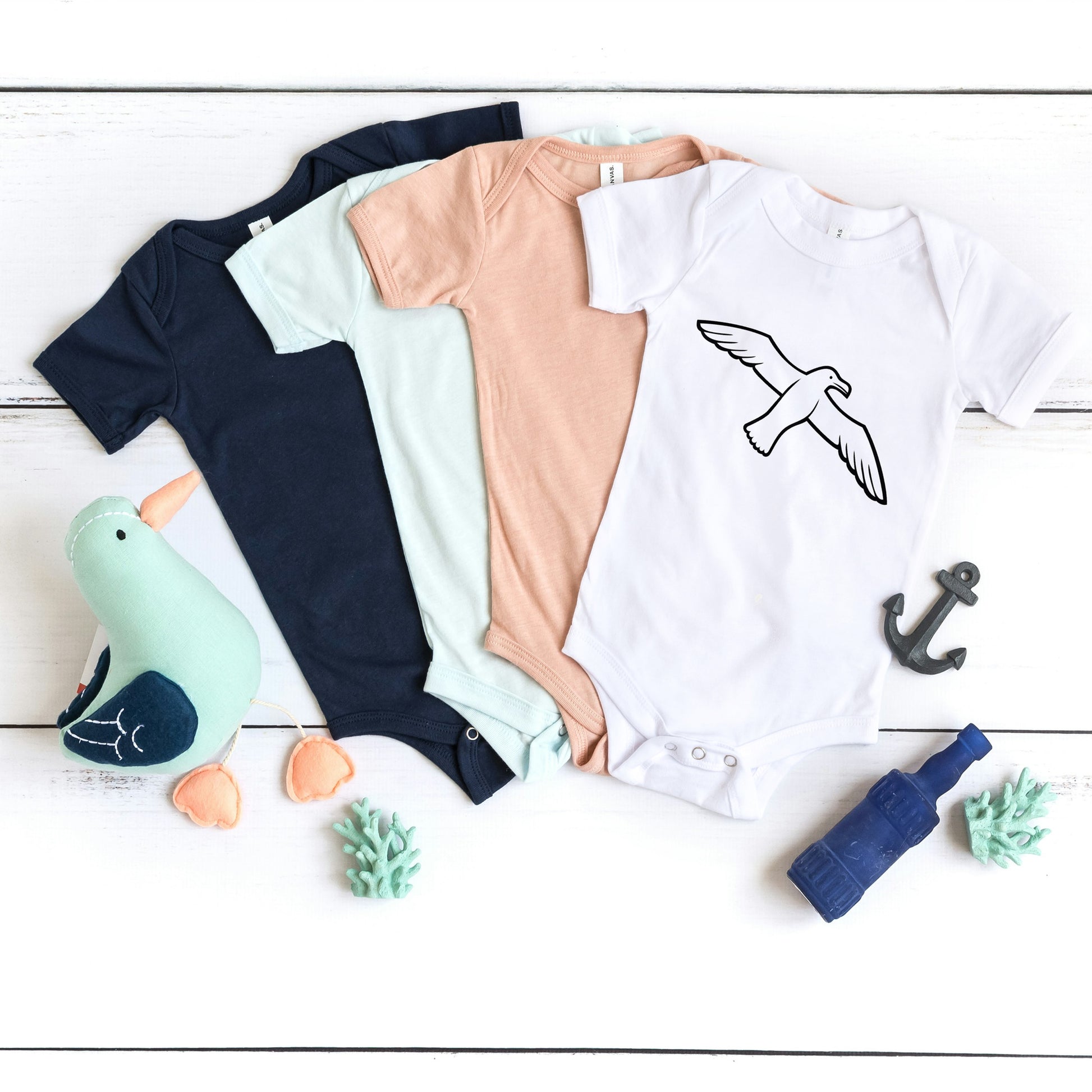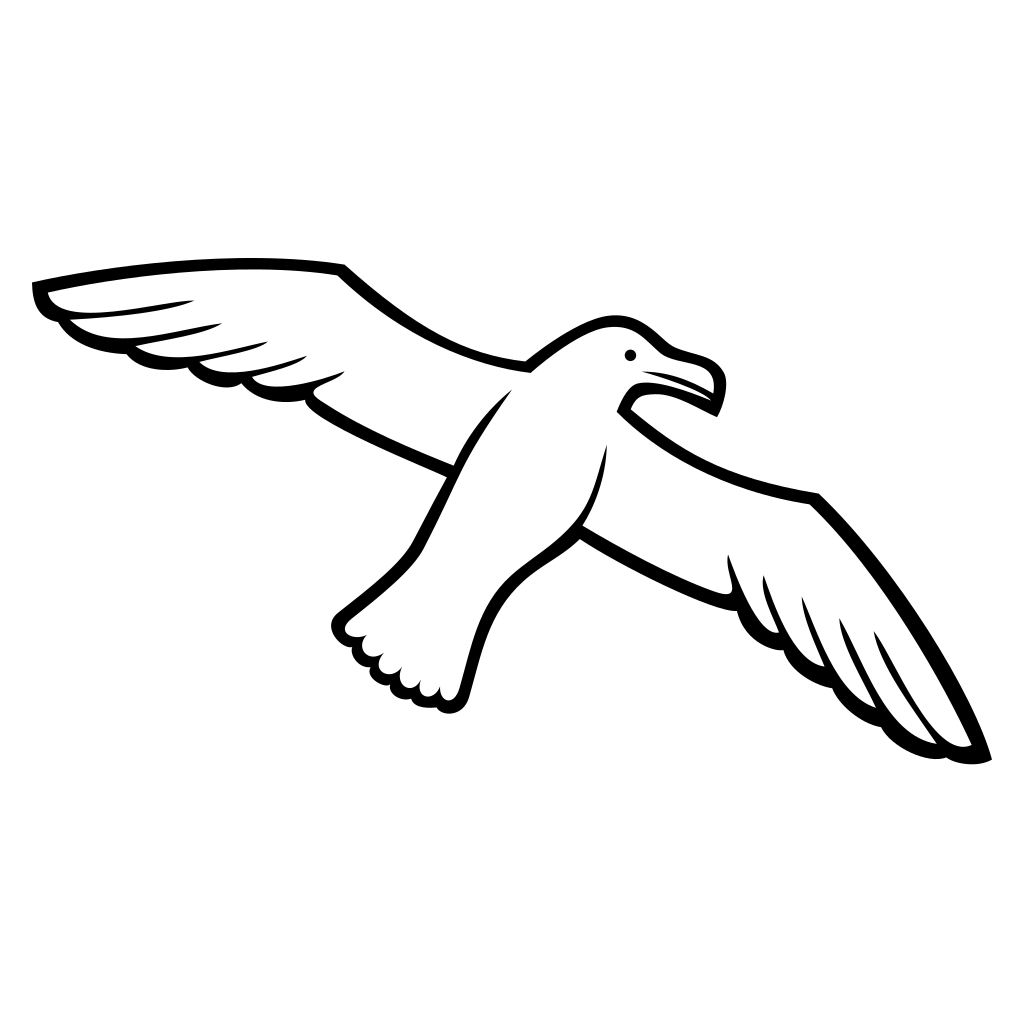 A graceful seagull glides effortlessly across the clear sky, its wings outstretched in a captivating display of freedom and beauty. Perfect for crafting and design projects.