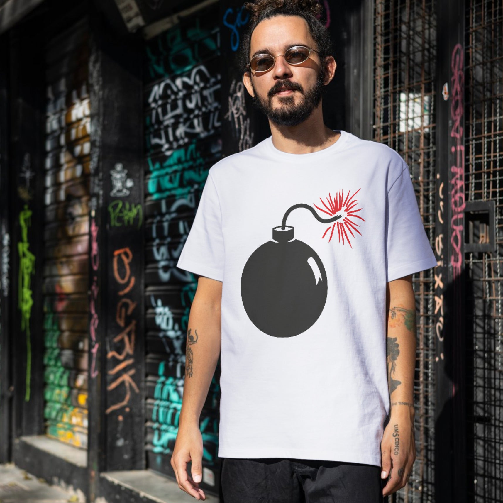 Explore a striking retro bomb vector design perfect for crafting projects. This bold graphic showcases a classic bomb shape with a fiery fuse, ideal for unique creations.