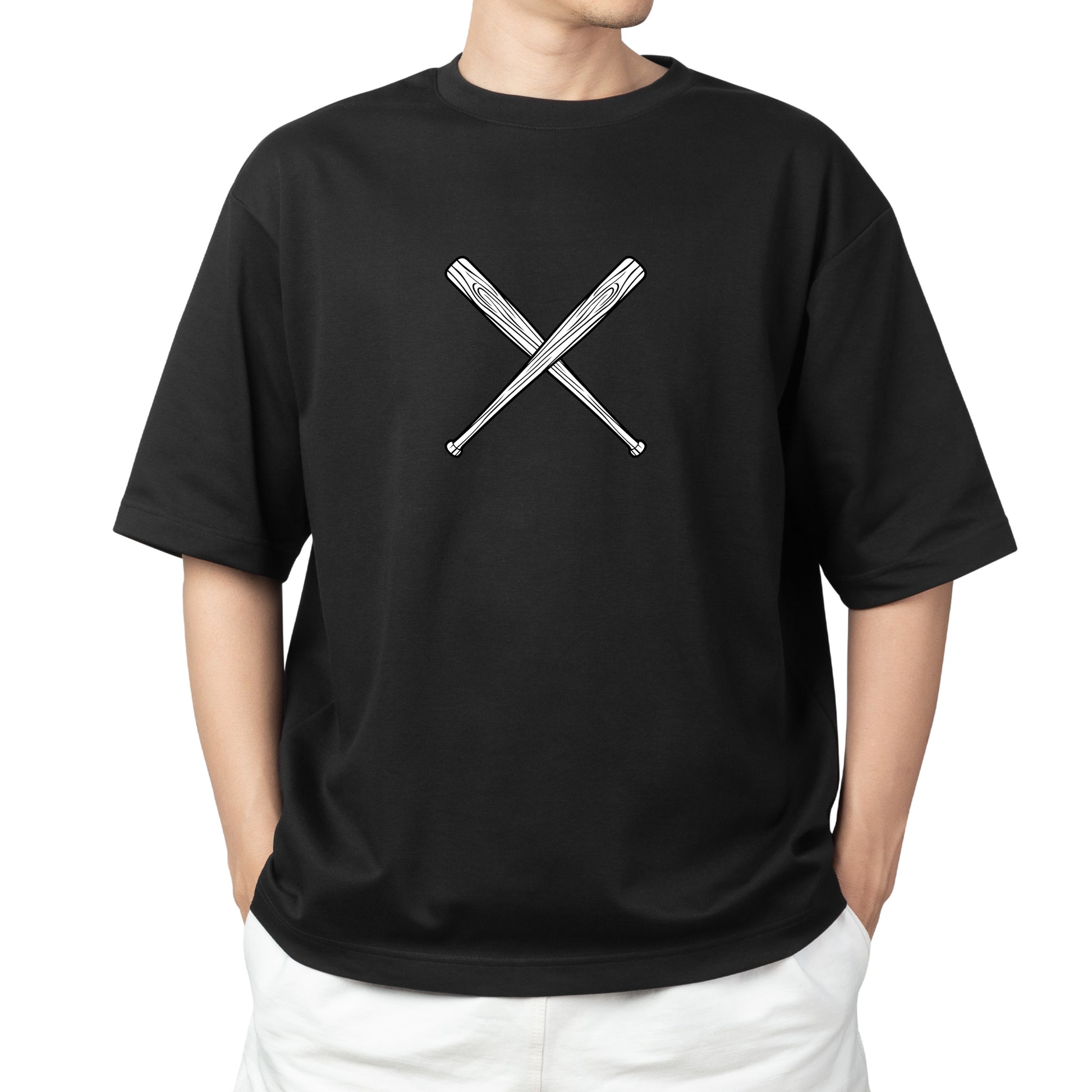 Two black baseball bats cross each other in a striking design, perfect for crafting unique artwork or personalized items. Ideal for sports enthusiasts and creative minds alike.