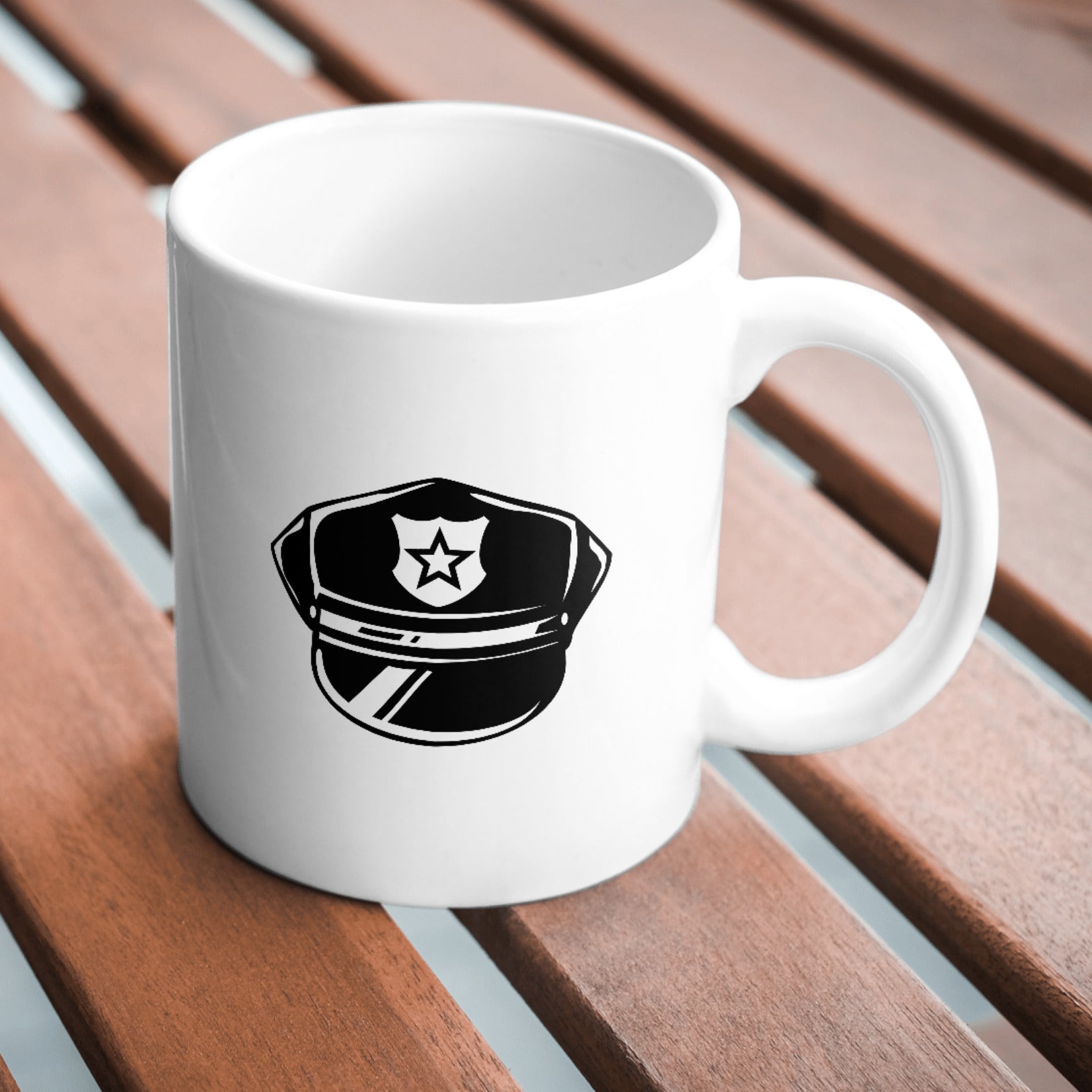 A stunning vector design depicting a classic police hat, ideal for cutting machines and various artistic projects. It features distinct details with a bold police badge.