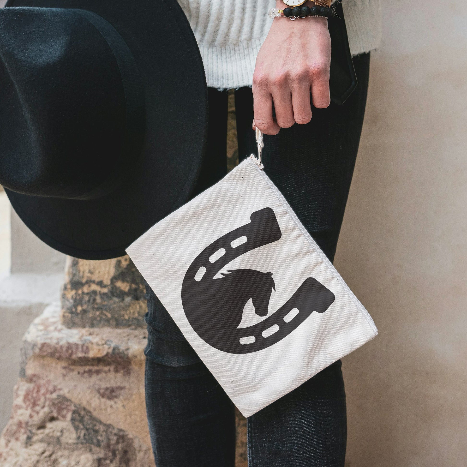 A creative design featuring a horseshoe outline, elegantly showcasing a horse silhouette within. Perfect for cutting machines and various crafting endeavors, adding a rustic charm.